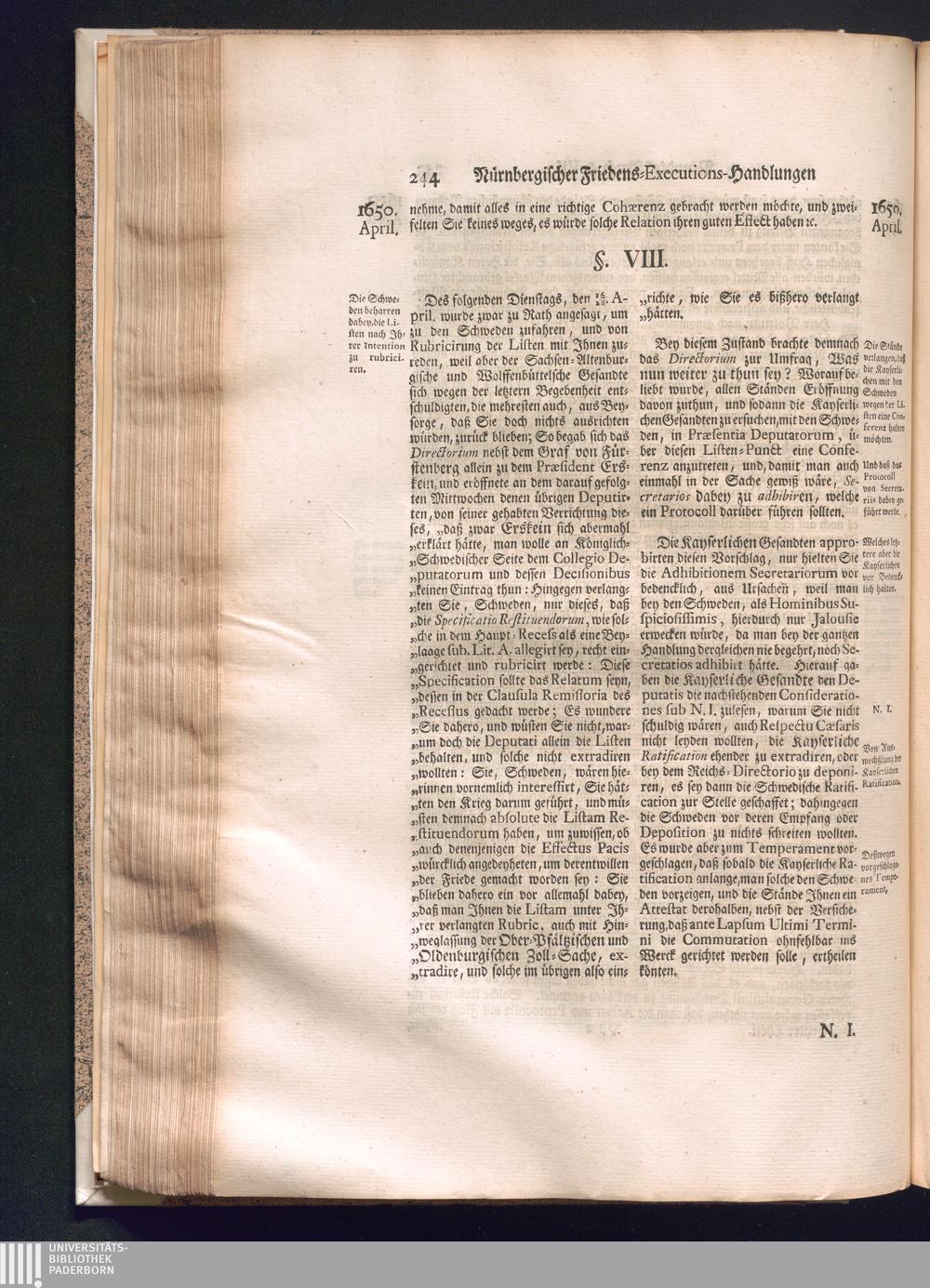 Zweyter und letzter Theil (1737) Worinnen enthalten, wie und welchergestalt die würckliche Vollziehung des Westphälischen Friedens, sowohl in puncto Exauctorationis Militæ und Evacuationis Locorum, als auch und vornehmlich in dem hochwichtigen puncto Restitutionis ex Capite Amnestiæ & Gravaminum, biß zum völligen Schluß des Congressus, Anno 1651, geschehen ist, in einer ausführlichen Historischen Erzehlung, mit beygefügten authentischen Urkunden, auch einem vollständigen Register