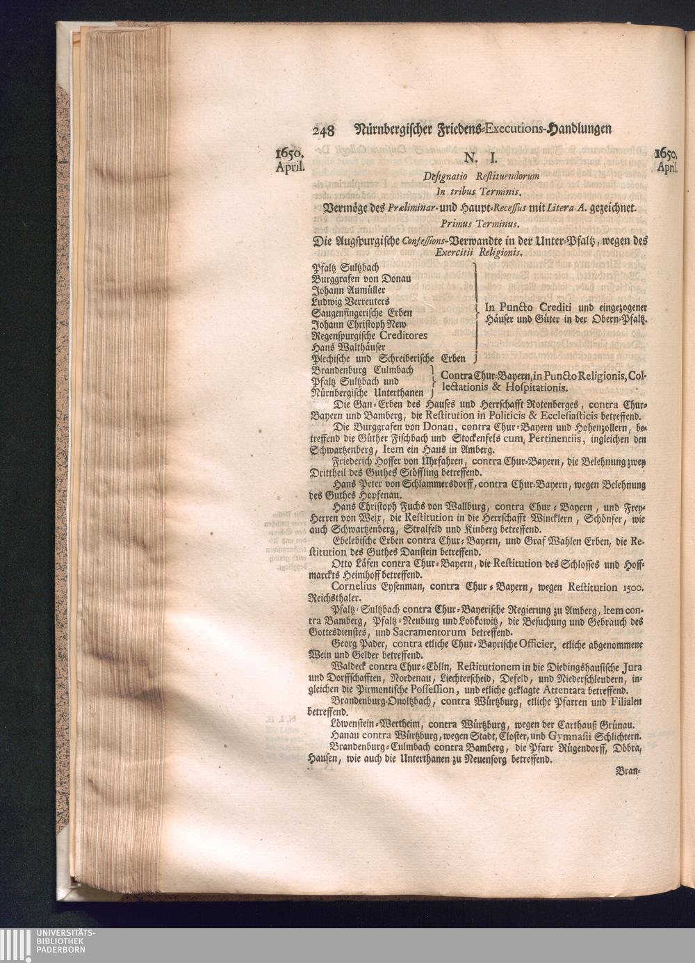 Zweyter und letzter Theil (1737) Worinnen enthalten, wie und welchergestalt die würckliche Vollziehung des Westphälischen Friedens, sowohl in puncto Exauctorationis Militæ und Evacuationis Locorum, als auch und vornehmlich in dem hochwichtigen puncto Restitutionis ex Capite Amnestiæ & Gravaminum, biß zum völligen Schluß des Congressus, Anno 1651, geschehen ist, in einer ausführlichen Historischen Erzehlung, mit beygefügten authentischen Urkunden, auch einem vollständigen Register