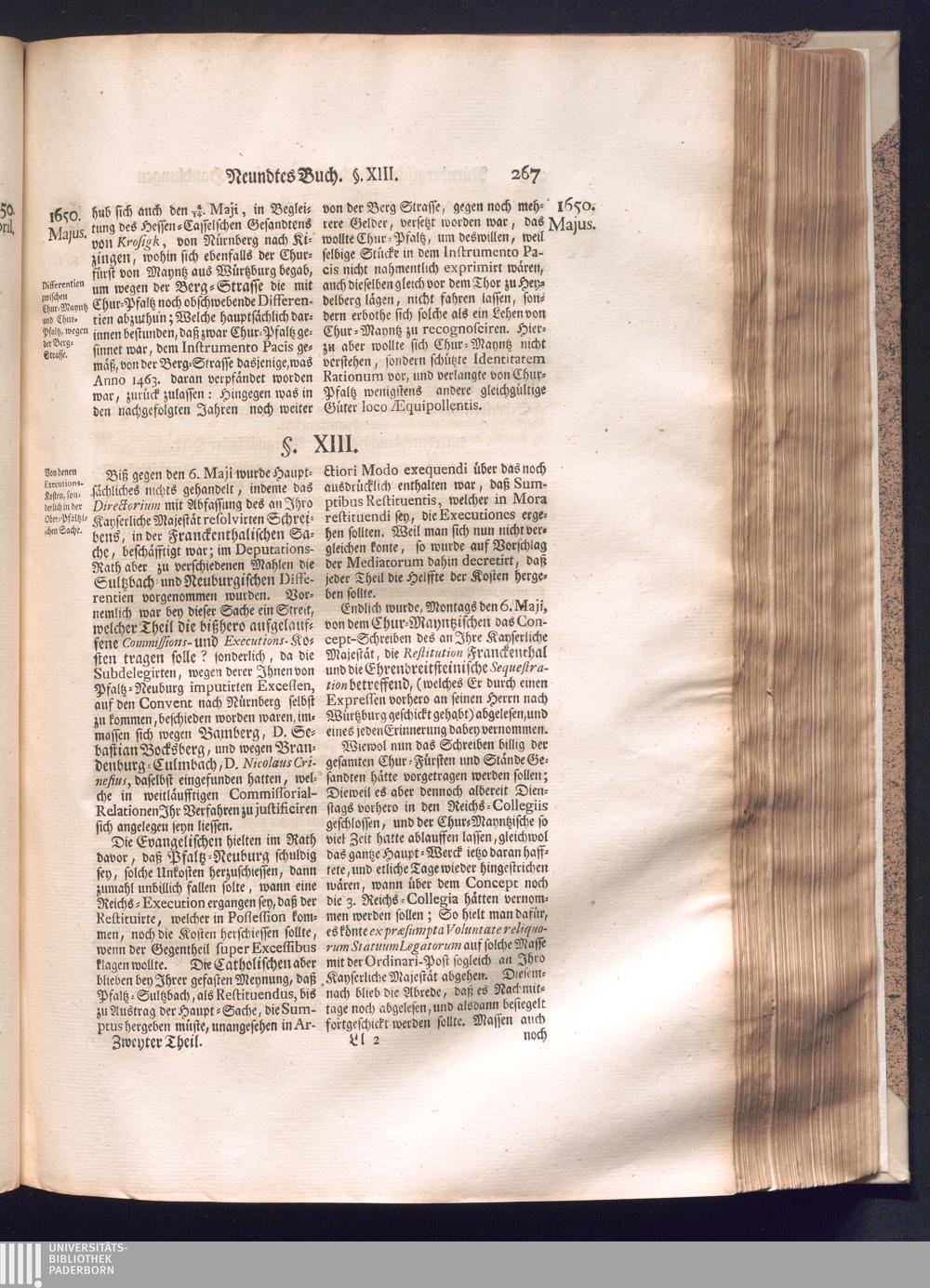 Zweyter und letzter Theil (1737) Worinnen enthalten, wie und welchergestalt die würckliche Vollziehung des Westphälischen Friedens, sowohl in puncto Exauctorationis Militæ und Evacuationis Locorum, als auch und vornehmlich in dem hochwichtigen puncto Restitutionis ex Capite Amnestiæ & Gravaminum, biß zum völligen Schluß des Congressus, Anno 1651, geschehen ist, in einer ausführlichen Historischen Erzehlung, mit beygefügten authentischen Urkunden, auch einem vollständigen Register