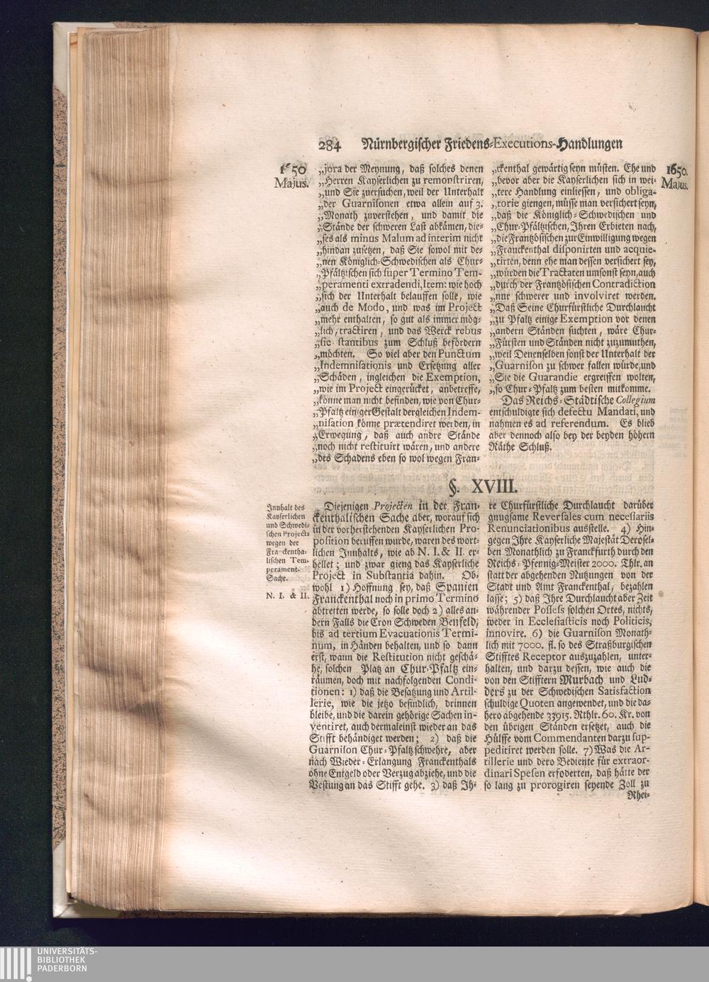 Zweyter und letzter Theil (1737) Worinnen enthalten, wie und welchergestalt die würckliche Vollziehung des Westphälischen Friedens, sowohl in puncto Exauctorationis Militæ und Evacuationis Locorum, als auch und vornehmlich in dem hochwichtigen puncto Restitutionis ex Capite Amnestiæ & Gravaminum, biß zum völligen Schluß des Congressus, Anno 1651, geschehen ist, in einer ausführlichen Historischen Erzehlung, mit beygefügten authentischen Urkunden, auch einem vollständigen Register