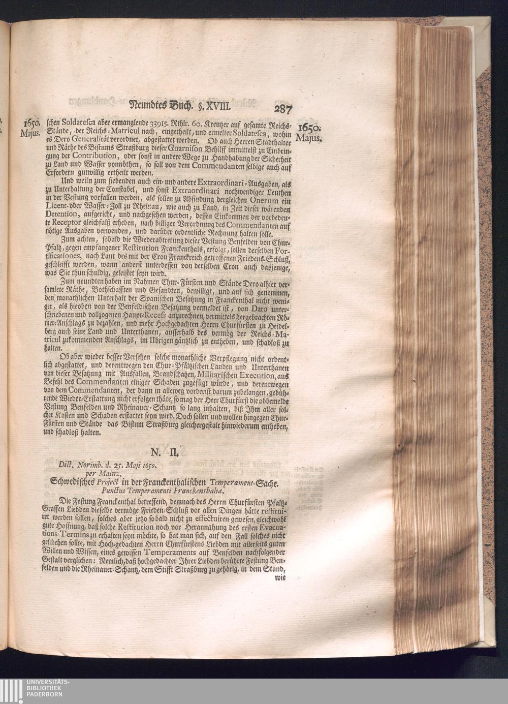 Zweyter und letzter Theil (1737) Worinnen enthalten, wie und welchergestalt die würckliche Vollziehung des Westphälischen Friedens, sowohl in puncto Exauctorationis Militæ und Evacuationis Locorum, als auch und vornehmlich in dem hochwichtigen puncto Restitutionis ex Capite Amnestiæ & Gravaminum, biß zum völligen Schluß des Congressus, Anno 1651, geschehen ist, in einer ausführlichen Historischen Erzehlung, mit beygefügten authentischen Urkunden, auch einem vollständigen Register