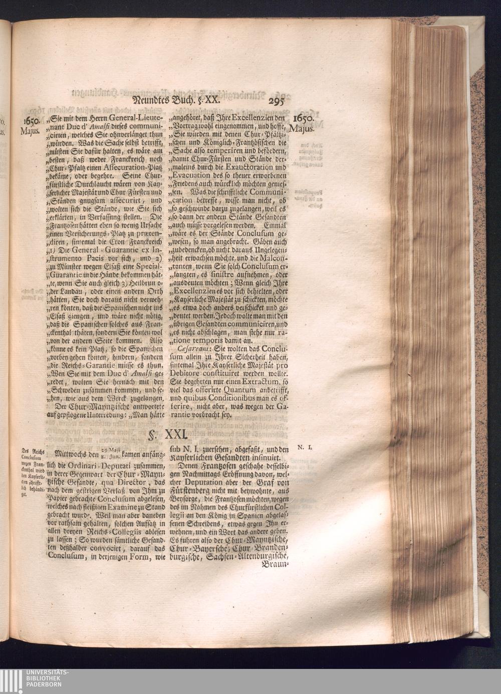 Zweyter und letzter Theil (1737) Worinnen enthalten, wie und welchergestalt die würckliche Vollziehung des Westphälischen Friedens, sowohl in puncto Exauctorationis Militæ und Evacuationis Locorum, als auch und vornehmlich in dem hochwichtigen puncto Restitutionis ex Capite Amnestiæ & Gravaminum, biß zum völligen Schluß des Congressus, Anno 1651, geschehen ist, in einer ausführlichen Historischen Erzehlung, mit beygefügten authentischen Urkunden, auch einem vollständigen Register