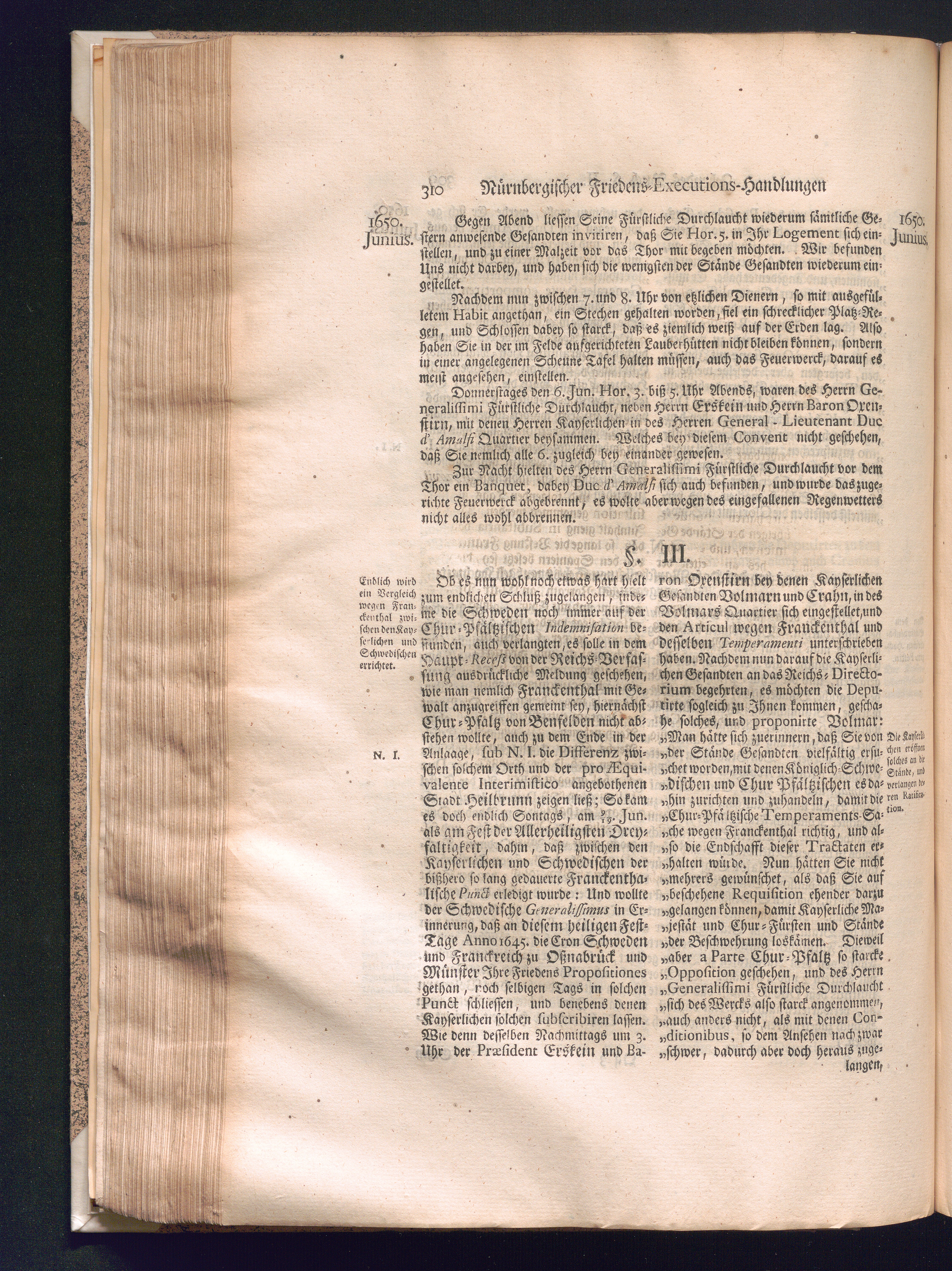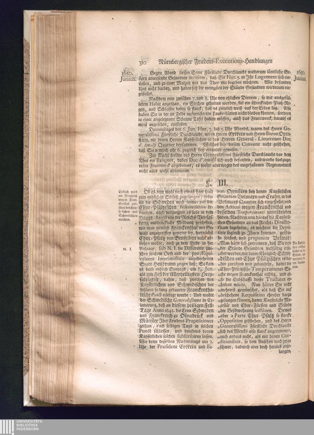 Zweyter und letzter Theil (1737) Worinnen enthalten, wie und welchergestalt die würckliche Vollziehung des Westphälischen Friedens, sowohl in puncto Exauctorationis Militæ und Evacuationis Locorum, als auch und vornehmlich in dem hochwichtigen puncto Restitutionis ex Capite Amnestiæ & Gravaminum, biß zum völligen Schluß des Congressus, Anno 1651, geschehen ist, in einer ausführlichen Historischen Erzehlung, mit beygefügten authentischen Urkunden, auch einem vollständigen Register