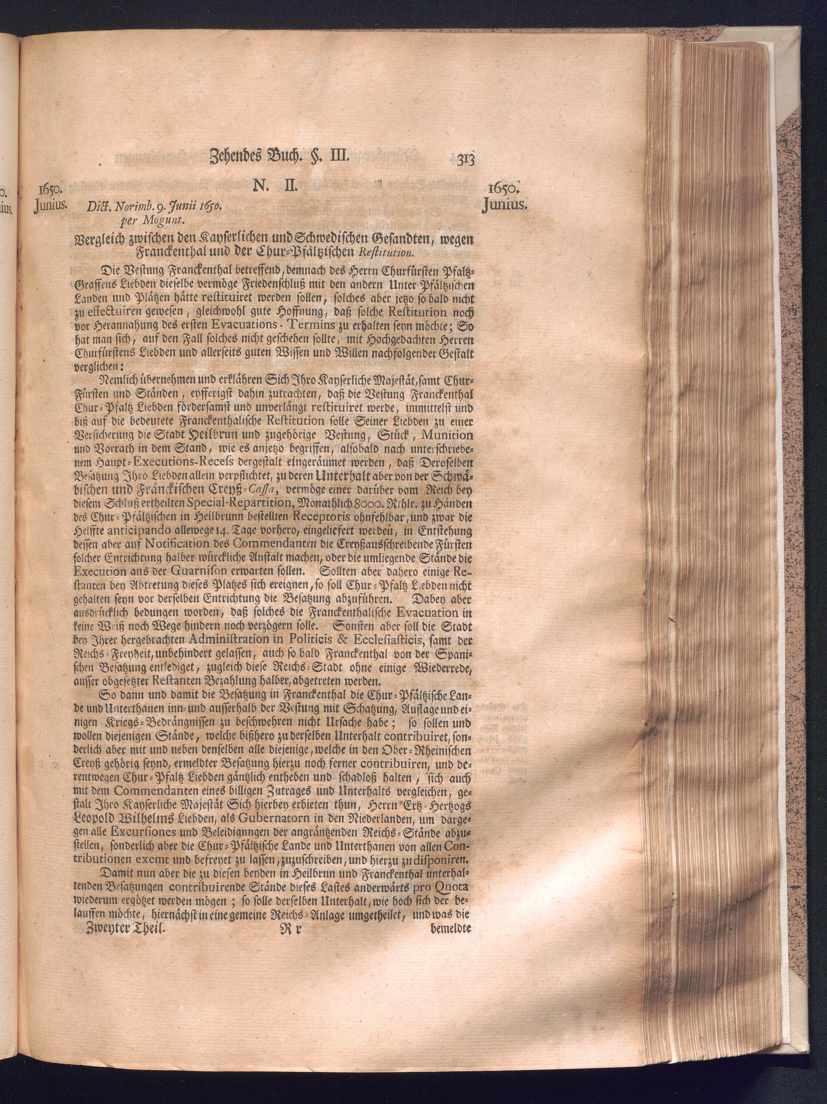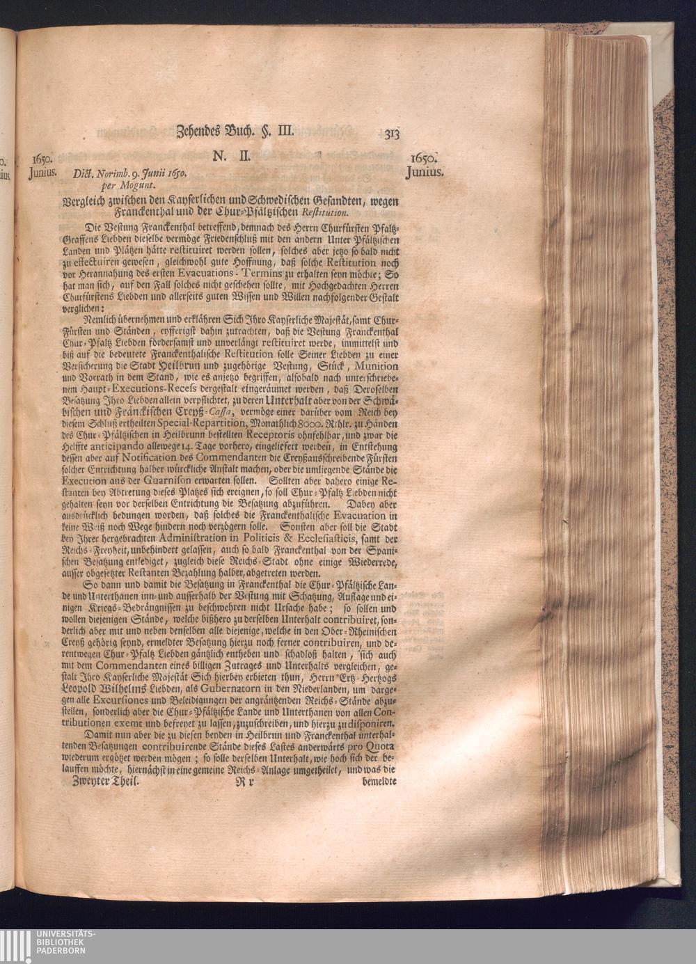 Zweyter und letzter Theil (1737) Worinnen enthalten, wie und welchergestalt die würckliche Vollziehung des Westphälischen Friedens, sowohl in puncto Exauctorationis Militæ und Evacuationis Locorum, als auch und vornehmlich in dem hochwichtigen puncto Restitutionis ex Capite Amnestiæ & Gravaminum, biß zum völligen Schluß des Congressus, Anno 1651, geschehen ist, in einer ausführlichen Historischen Erzehlung, mit beygefügten authentischen Urkunden, auch einem vollständigen Register