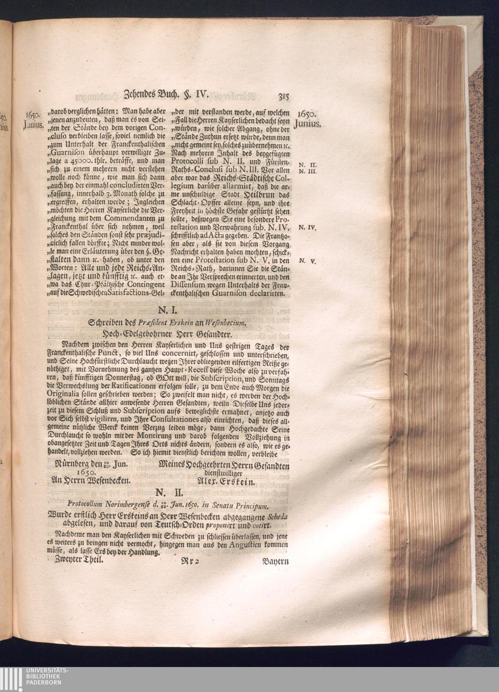 Zweyter und letzter Theil (1737) Worinnen enthalten, wie und welchergestalt die würckliche Vollziehung des Westphälischen Friedens, sowohl in puncto Exauctorationis Militæ und Evacuationis Locorum, als auch und vornehmlich in dem hochwichtigen puncto Restitutionis ex Capite Amnestiæ & Gravaminum, biß zum völligen Schluß des Congressus, Anno 1651, geschehen ist, in einer ausführlichen Historischen Erzehlung, mit beygefügten authentischen Urkunden, auch einem vollständigen Register
