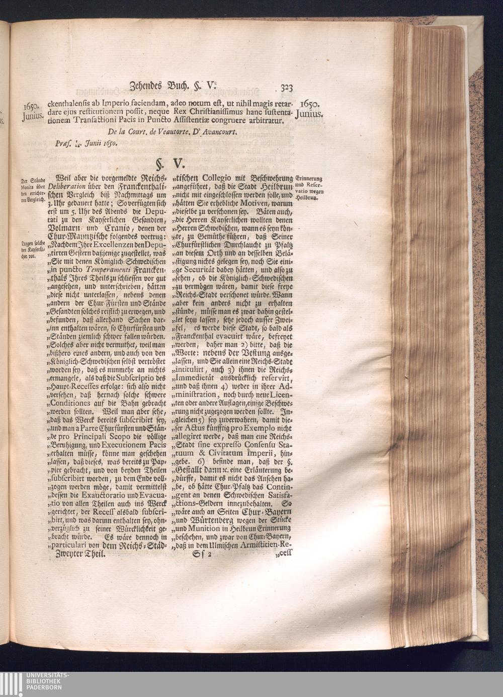 Zweyter und letzter Theil (1737) Worinnen enthalten, wie und welchergestalt die würckliche Vollziehung des Westphälischen Friedens, sowohl in puncto Exauctorationis Militæ und Evacuationis Locorum, als auch und vornehmlich in dem hochwichtigen puncto Restitutionis ex Capite Amnestiæ & Gravaminum, biß zum völligen Schluß des Congressus, Anno 1651, geschehen ist, in einer ausführlichen Historischen Erzehlung, mit beygefügten authentischen Urkunden, auch einem vollständigen Register