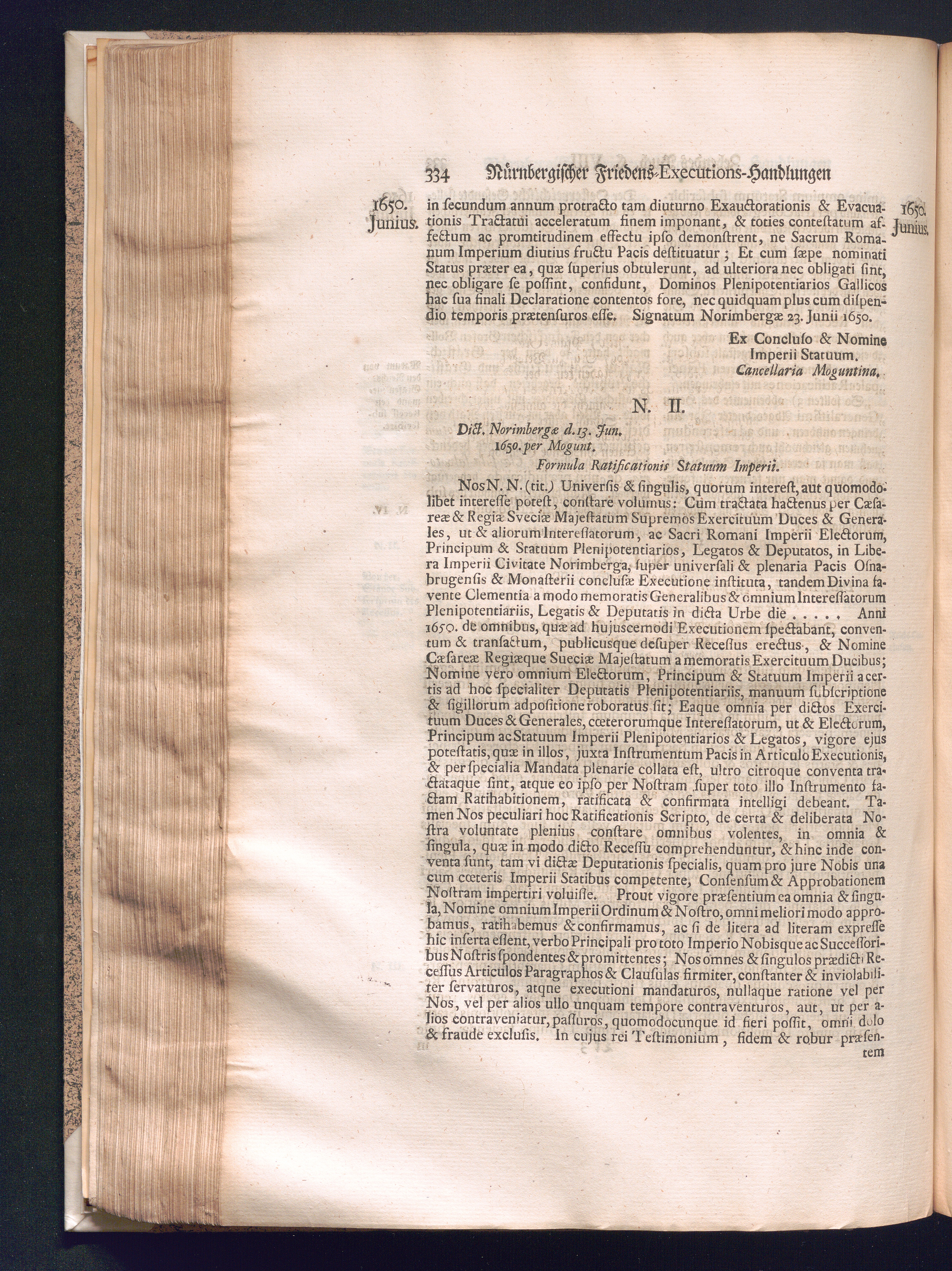 Zweyter und letzter Theil (1737) Worinnen enthalten, wie und welchergestalt die würckliche Vollziehung des Westphälischen Friedens, sowohl in puncto Exauctorationis Militæ und Evacuationis Locorum, als auch und vornehmlich in dem hochwichtigen puncto Restitutionis ex Capite Amnestiæ & Gravaminum, biß zum völligen Schluß des Congressus, Anno 1651, geschehen ist, in einer ausführlichen Historischen Erzehlung, mit beygefügten authentischen Urkunden, auch einem vollständigen Register