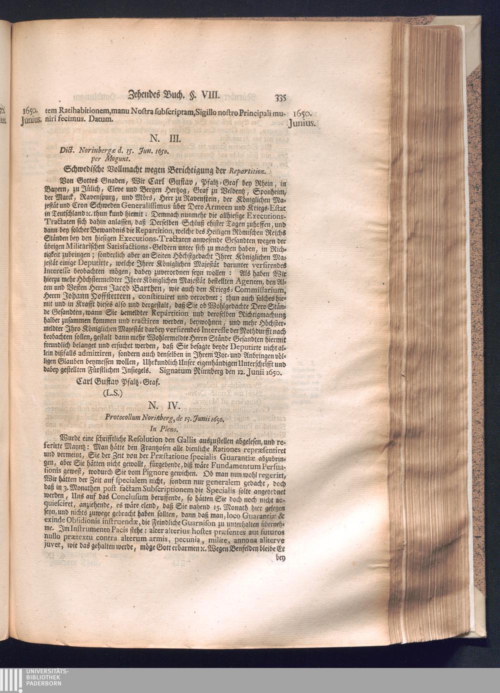Zweyter und letzter Theil (1737) Worinnen enthalten, wie und welchergestalt die würckliche Vollziehung des Westphälischen Friedens, sowohl in puncto Exauctorationis Militæ und Evacuationis Locorum, als auch und vornehmlich in dem hochwichtigen puncto Restitutionis ex Capite Amnestiæ & Gravaminum, biß zum völligen Schluß des Congressus, Anno 1651, geschehen ist, in einer ausführlichen Historischen Erzehlung, mit beygefügten authentischen Urkunden, auch einem vollständigen Register