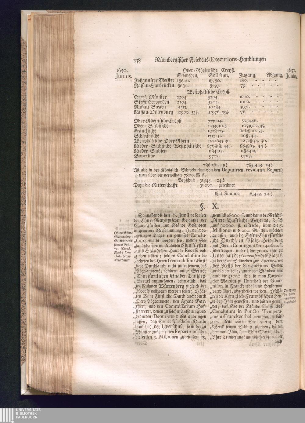 Zweyter und letzter Theil (1737) Worinnen enthalten, wie und welchergestalt die würckliche Vollziehung des Westphälischen Friedens, sowohl in puncto Exauctorationis Militæ und Evacuationis Locorum, als auch und vornehmlich in dem hochwichtigen puncto Restitutionis ex Capite Amnestiæ & Gravaminum, biß zum völligen Schluß des Congressus, Anno 1651, geschehen ist, in einer ausführlichen Historischen Erzehlung, mit beygefügten authentischen Urkunden, auch einem vollständigen Register