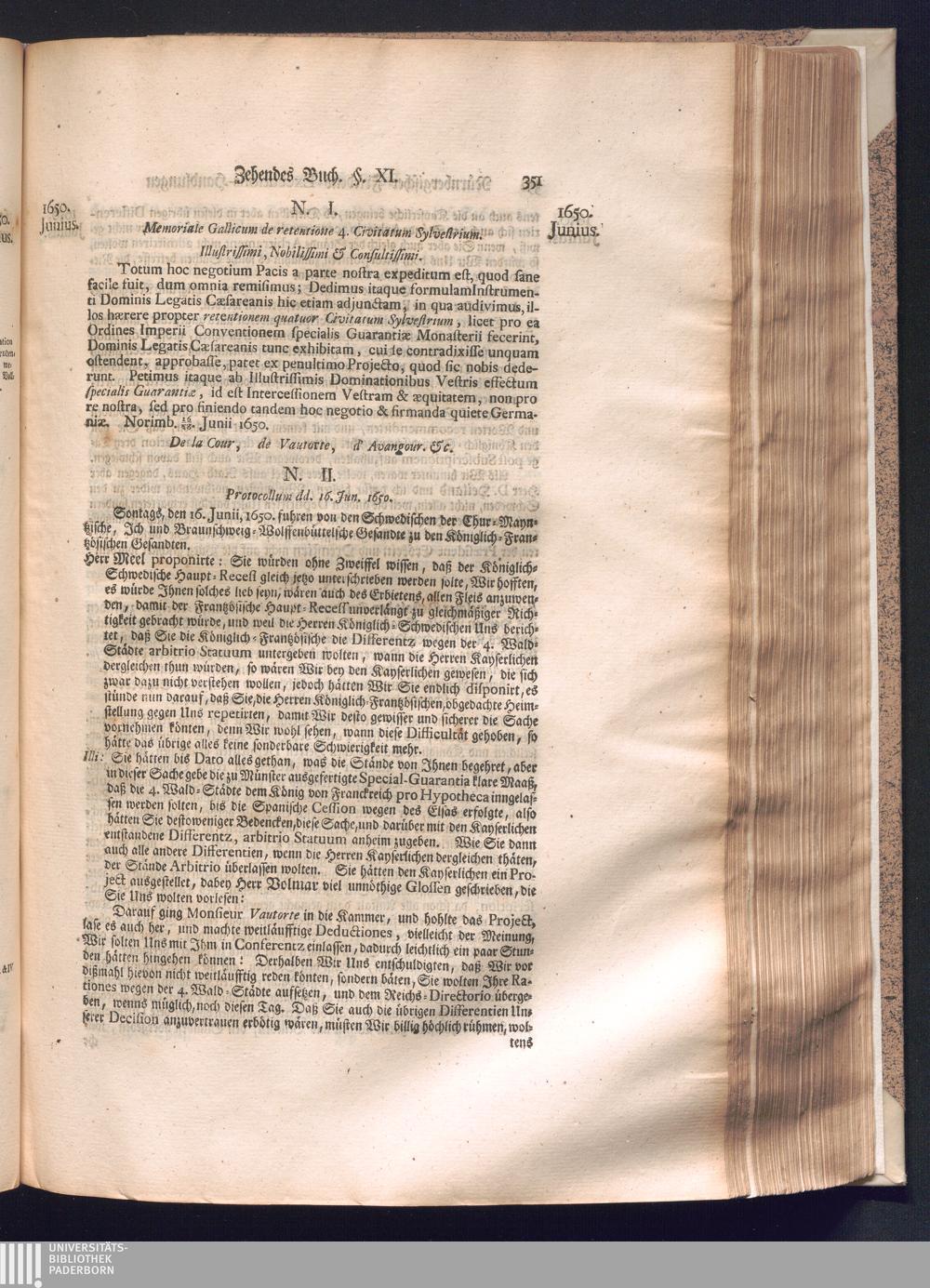 Zweyter und letzter Theil (1737) Worinnen enthalten, wie und welchergestalt die würckliche Vollziehung des Westphälischen Friedens, sowohl in puncto Exauctorationis Militæ und Evacuationis Locorum, als auch und vornehmlich in dem hochwichtigen puncto Restitutionis ex Capite Amnestiæ & Gravaminum, biß zum völligen Schluß des Congressus, Anno 1651, geschehen ist, in einer ausführlichen Historischen Erzehlung, mit beygefügten authentischen Urkunden, auch einem vollständigen Register