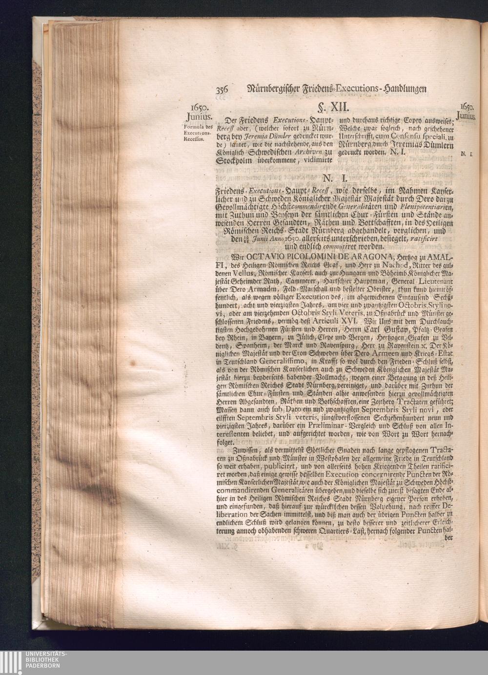 Zweyter und letzter Theil (1737) Worinnen enthalten, wie und welchergestalt die würckliche Vollziehung des Westphälischen Friedens, sowohl in puncto Exauctorationis Militæ und Evacuationis Locorum, als auch und vornehmlich in dem hochwichtigen puncto Restitutionis ex Capite Amnestiæ & Gravaminum, biß zum völligen Schluß des Congressus, Anno 1651, geschehen ist, in einer ausführlichen Historischen Erzehlung, mit beygefügten authentischen Urkunden, auch einem vollständigen Register