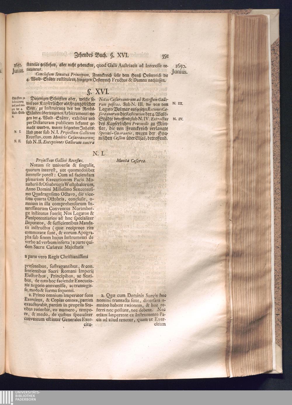 Zweyter und letzter Theil (1737) Worinnen enthalten, wie und welchergestalt die würckliche Vollziehung des Westphälischen Friedens, sowohl in puncto Exauctorationis Militæ und Evacuationis Locorum, als auch und vornehmlich in dem hochwichtigen puncto Restitutionis ex Capite Amnestiæ & Gravaminum, biß zum völligen Schluß des Congressus, Anno 1651, geschehen ist, in einer ausführlichen Historischen Erzehlung, mit beygefügten authentischen Urkunden, auch einem vollständigen Register