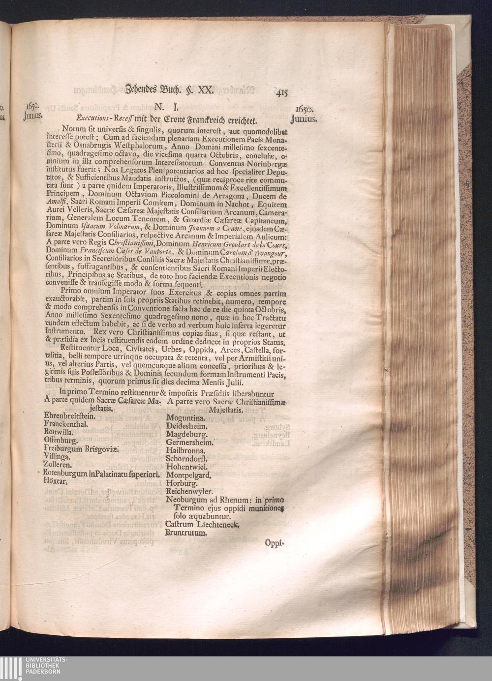 Zweyter und letzter Theil (1737) Worinnen enthalten, wie und welchergestalt die würckliche Vollziehung des Westphälischen Friedens, sowohl in puncto Exauctorationis Militæ und Evacuationis Locorum, als auch und vornehmlich in dem hochwichtigen puncto Restitutionis ex Capite Amnestiæ & Gravaminum, biß zum völligen Schluß des Congressus, Anno 1651, geschehen ist, in einer ausführlichen Historischen Erzehlung, mit beygefügten authentischen Urkunden, auch einem vollständigen Register