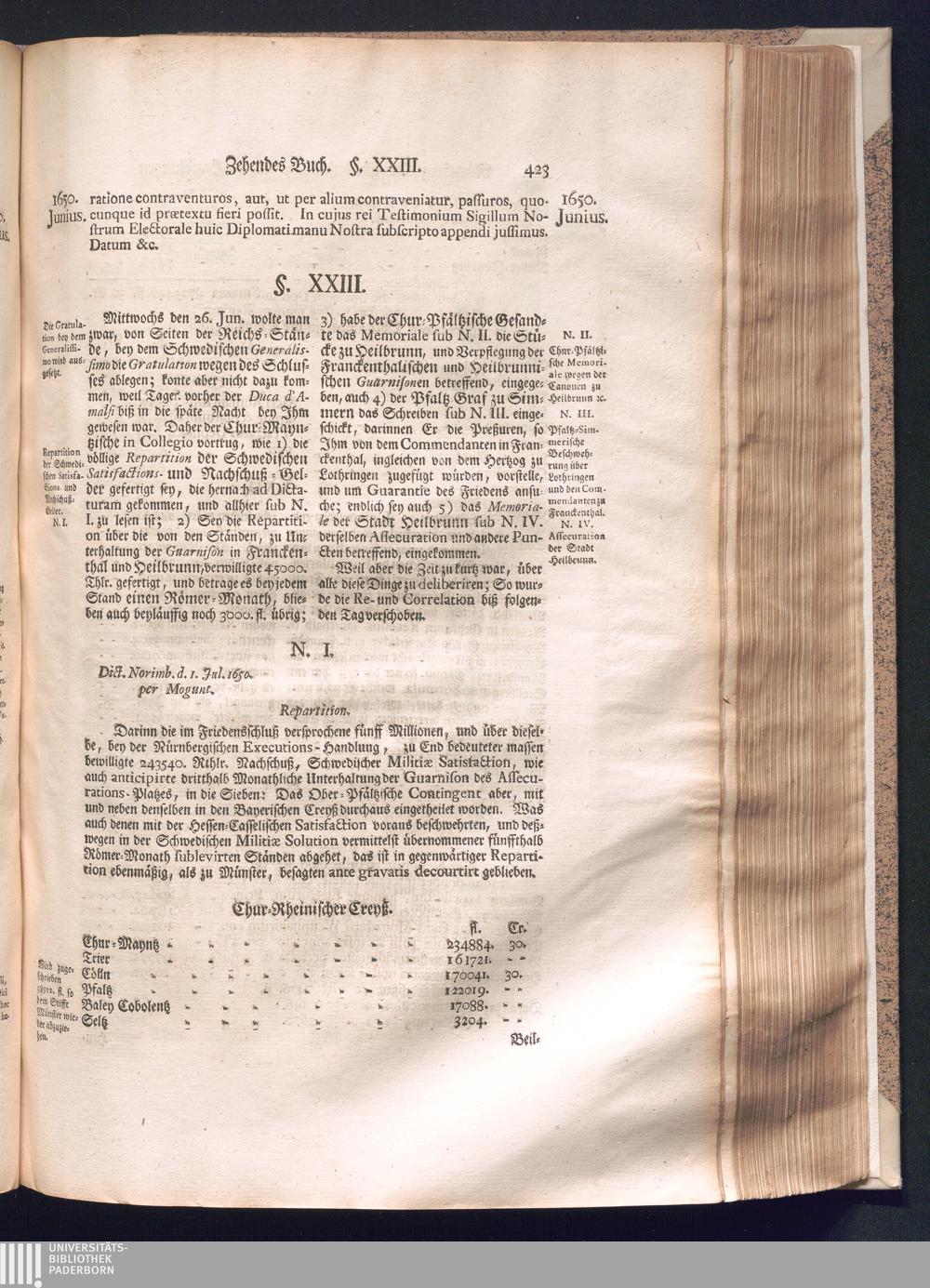 Zweyter und letzter Theil (1737) Worinnen enthalten, wie und welchergestalt die würckliche Vollziehung des Westphälischen Friedens, sowohl in puncto Exauctorationis Militæ und Evacuationis Locorum, als auch und vornehmlich in dem hochwichtigen puncto Restitutionis ex Capite Amnestiæ & Gravaminum, biß zum völligen Schluß des Congressus, Anno 1651, geschehen ist, in einer ausführlichen Historischen Erzehlung, mit beygefügten authentischen Urkunden, auch einem vollständigen Register