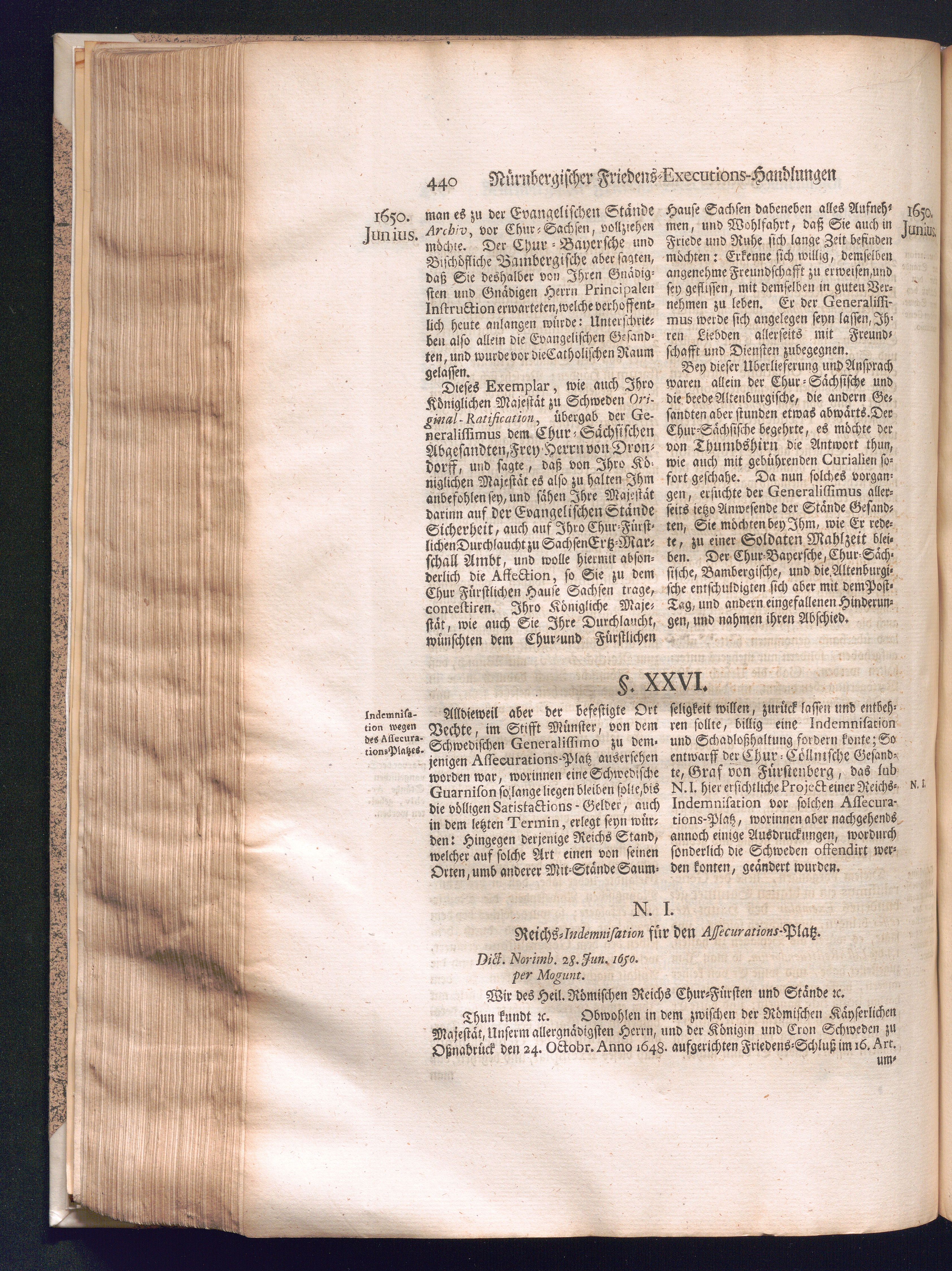 Zweyter und letzter Theil (1737) Worinnen enthalten, wie und welchergestalt die würckliche Vollziehung des Westphälischen Friedens, sowohl in puncto Exauctorationis Militæ und Evacuationis Locorum, als auch und vornehmlich in dem hochwichtigen puncto Restitutionis ex Capite Amnestiæ & Gravaminum, biß zum völligen Schluß des Congressus, Anno 1651, geschehen ist, in einer ausführlichen Historischen Erzehlung, mit beygefügten authentischen Urkunden, auch einem vollständigen Register