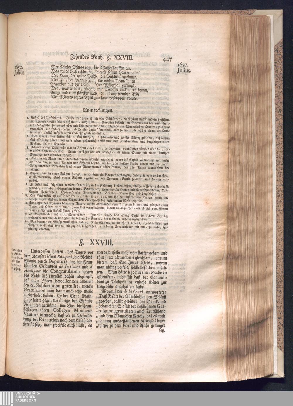 Zweyter und letzter Theil (1737) Worinnen enthalten, wie und welchergestalt die würckliche Vollziehung des Westphälischen Friedens, sowohl in puncto Exauctorationis Militæ und Evacuationis Locorum, als auch und vornehmlich in dem hochwichtigen puncto Restitutionis ex Capite Amnestiæ & Gravaminum, biß zum völligen Schluß des Congressus, Anno 1651, geschehen ist, in einer ausführlichen Historischen Erzehlung, mit beygefügten authentischen Urkunden, auch einem vollständigen Register
