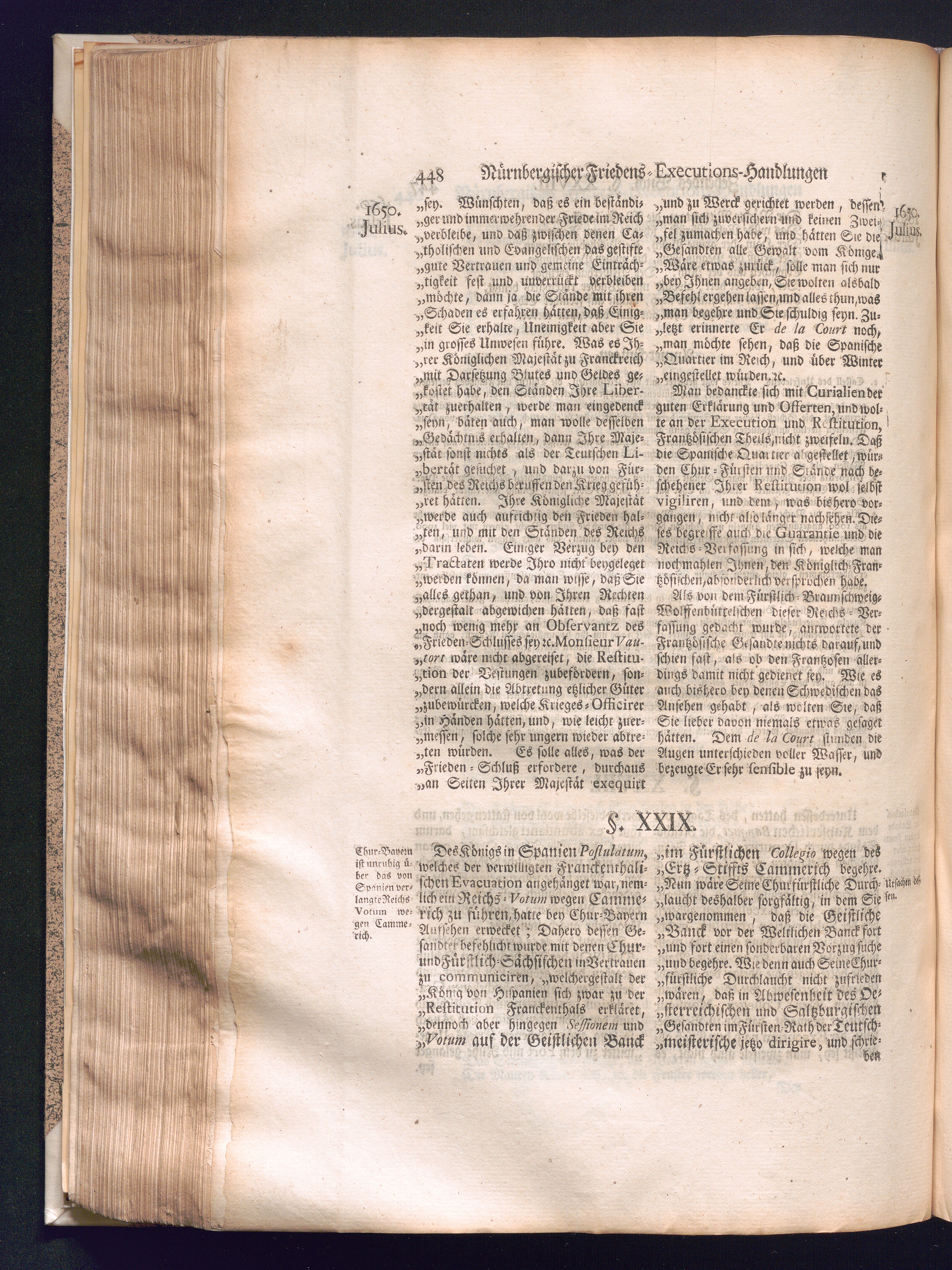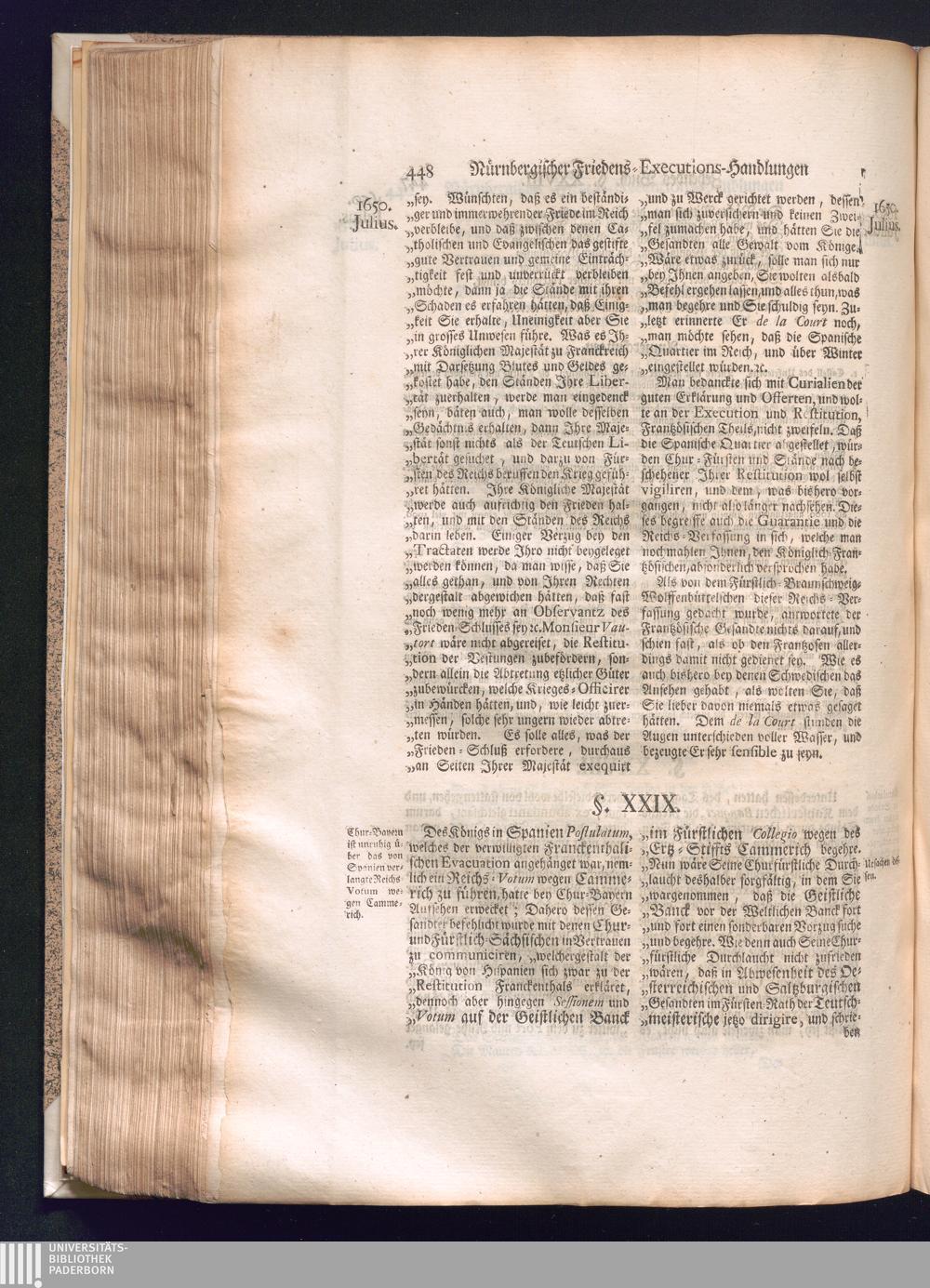 Zweyter und letzter Theil (1737) Worinnen enthalten, wie und welchergestalt die würckliche Vollziehung des Westphälischen Friedens, sowohl in puncto Exauctorationis Militæ und Evacuationis Locorum, als auch und vornehmlich in dem hochwichtigen puncto Restitutionis ex Capite Amnestiæ & Gravaminum, biß zum völligen Schluß des Congressus, Anno 1651, geschehen ist, in einer ausführlichen Historischen Erzehlung, mit beygefügten authentischen Urkunden, auch einem vollständigen Register