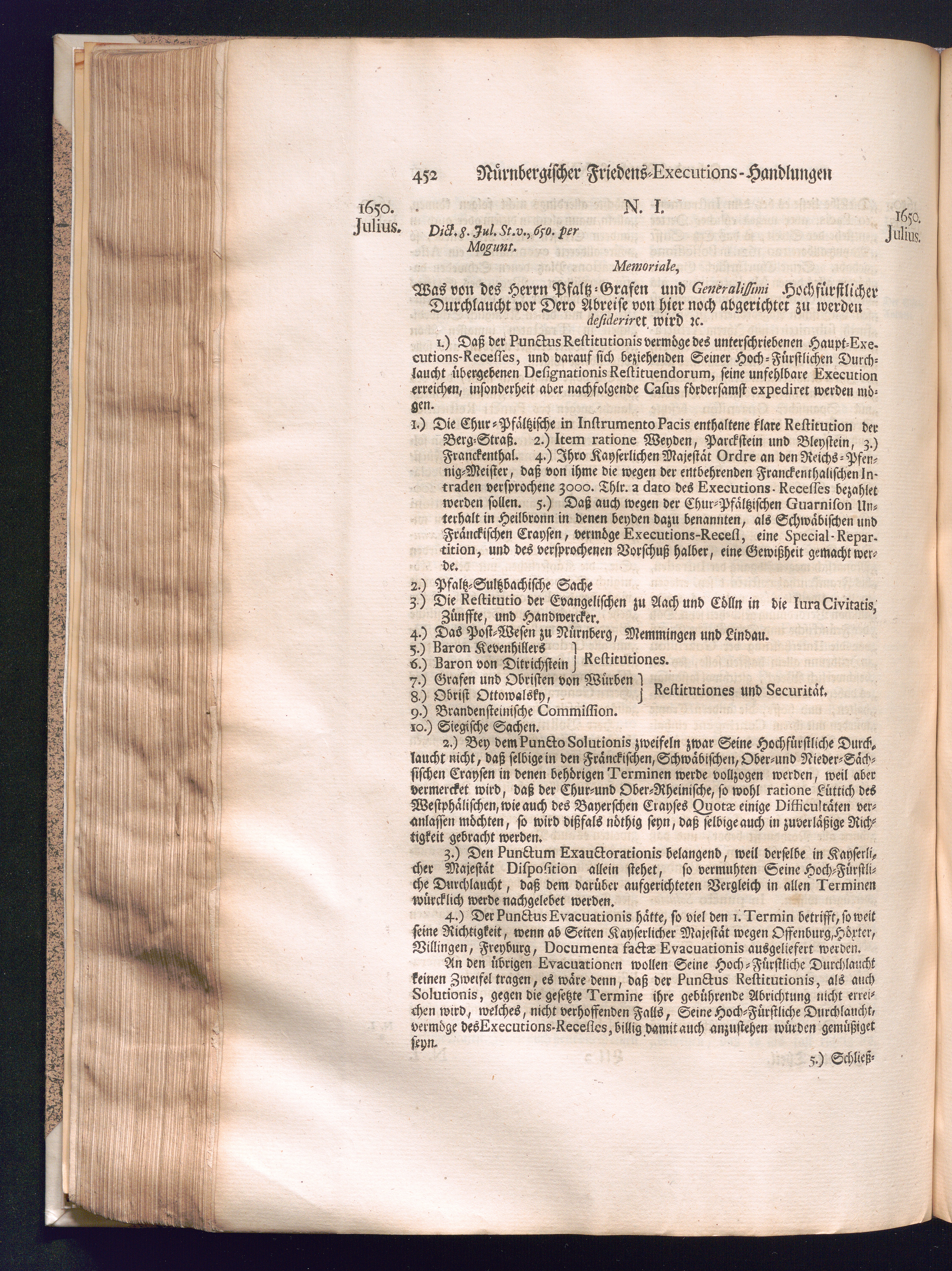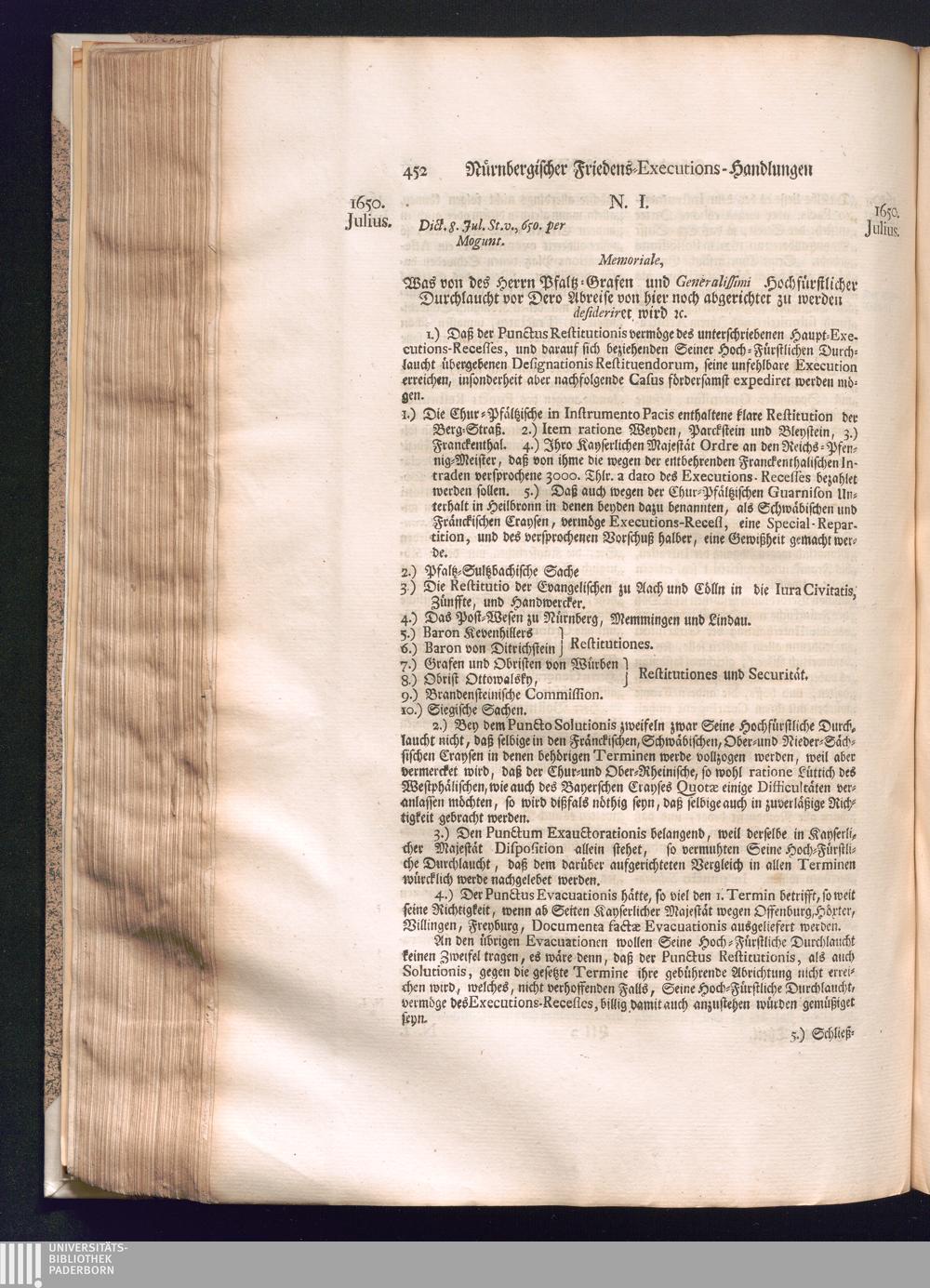 Zweyter und letzter Theil (1737) Worinnen enthalten, wie und welchergestalt die würckliche Vollziehung des Westphälischen Friedens, sowohl in puncto Exauctorationis Militæ und Evacuationis Locorum, als auch und vornehmlich in dem hochwichtigen puncto Restitutionis ex Capite Amnestiæ & Gravaminum, biß zum völligen Schluß des Congressus, Anno 1651, geschehen ist, in einer ausführlichen Historischen Erzehlung, mit beygefügten authentischen Urkunden, auch einem vollständigen Register