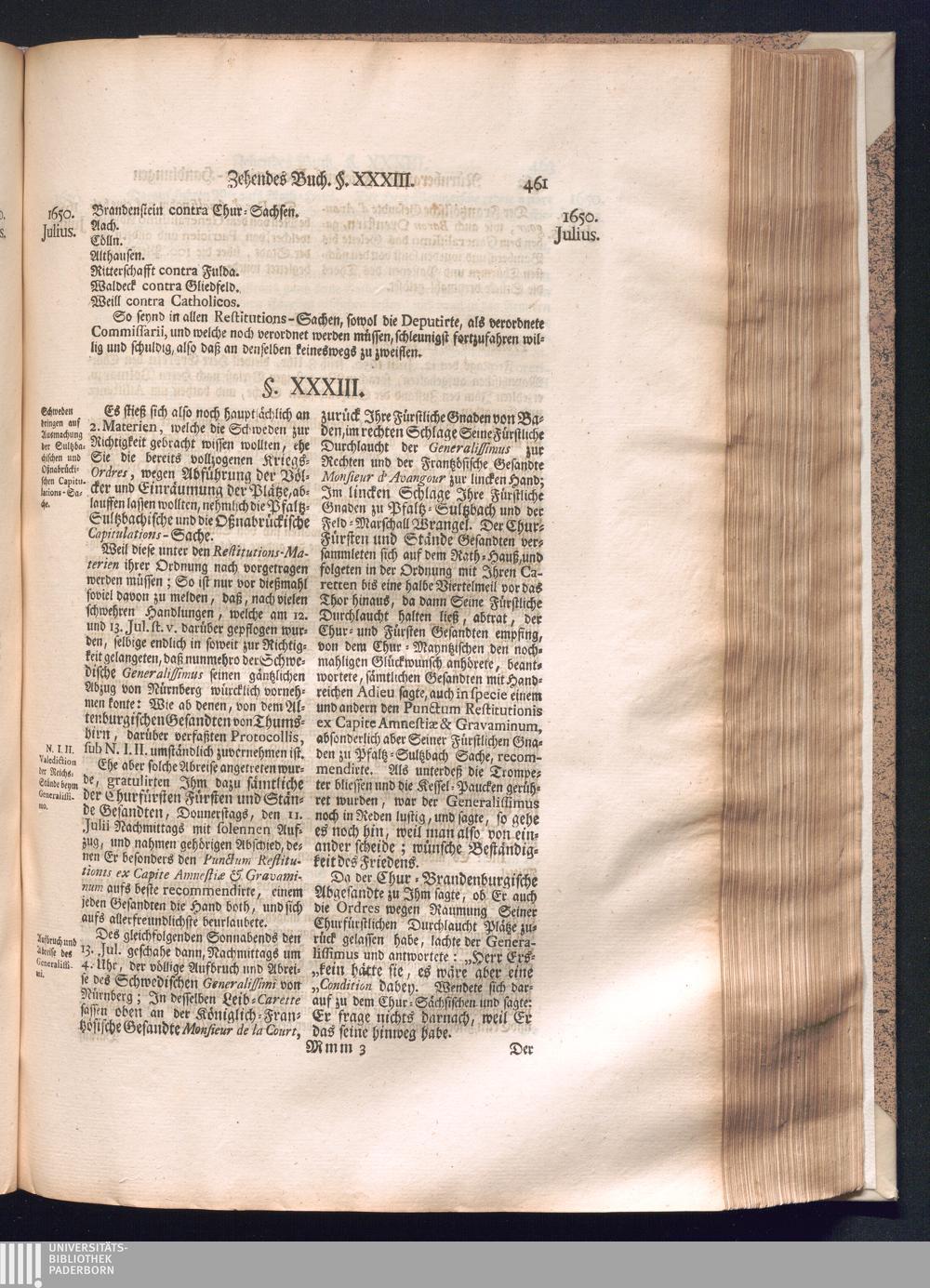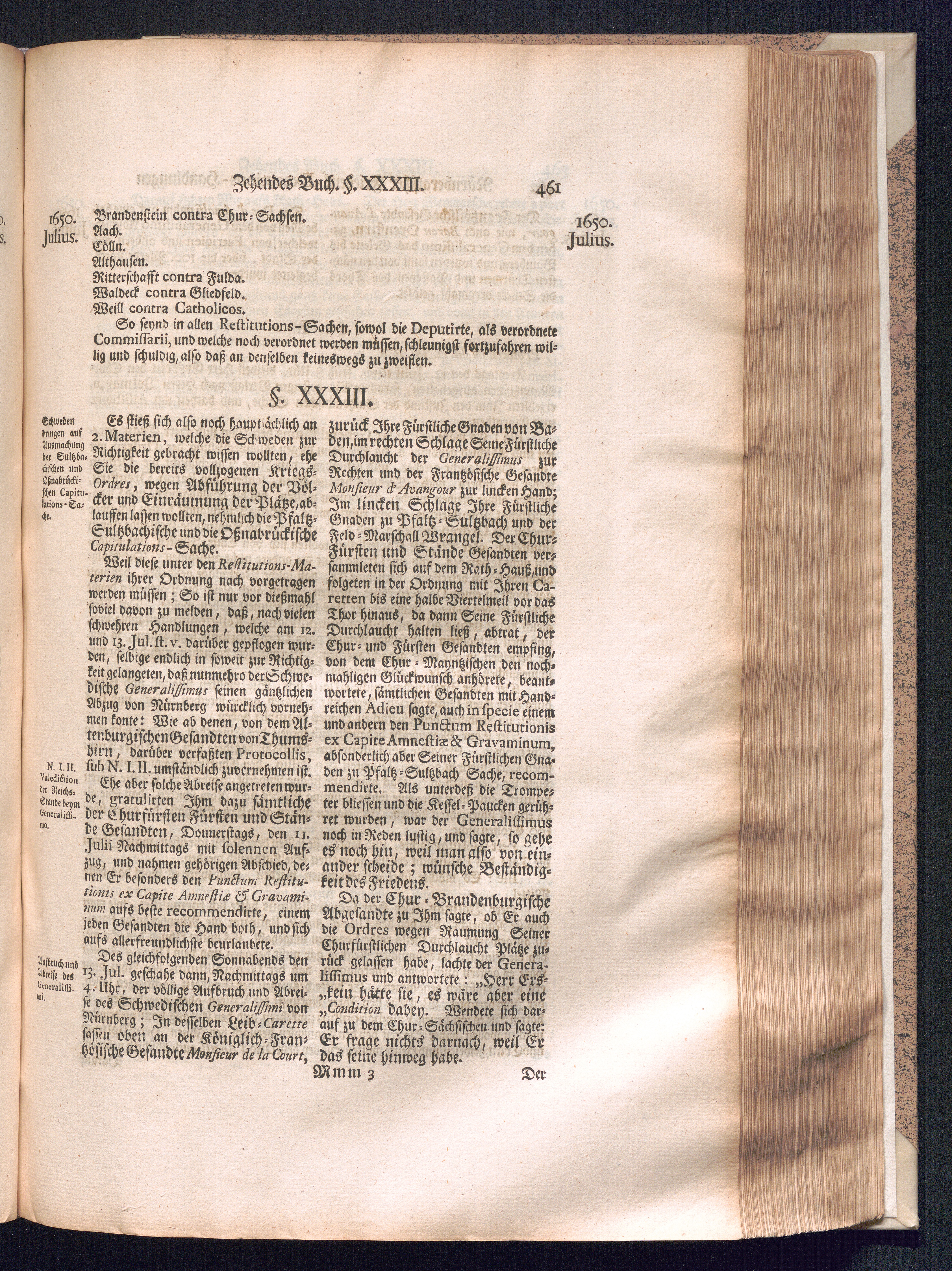 Zweyter und letzter Theil (1737) Worinnen enthalten, wie und welchergestalt die würckliche Vollziehung des Westphälischen Friedens, sowohl in puncto Exauctorationis Militæ und Evacuationis Locorum, als auch und vornehmlich in dem hochwichtigen puncto Restitutionis ex Capite Amnestiæ & Gravaminum, biß zum völligen Schluß des Congressus, Anno 1651, geschehen ist, in einer ausführlichen Historischen Erzehlung, mit beygefügten authentischen Urkunden, auch einem vollständigen Register