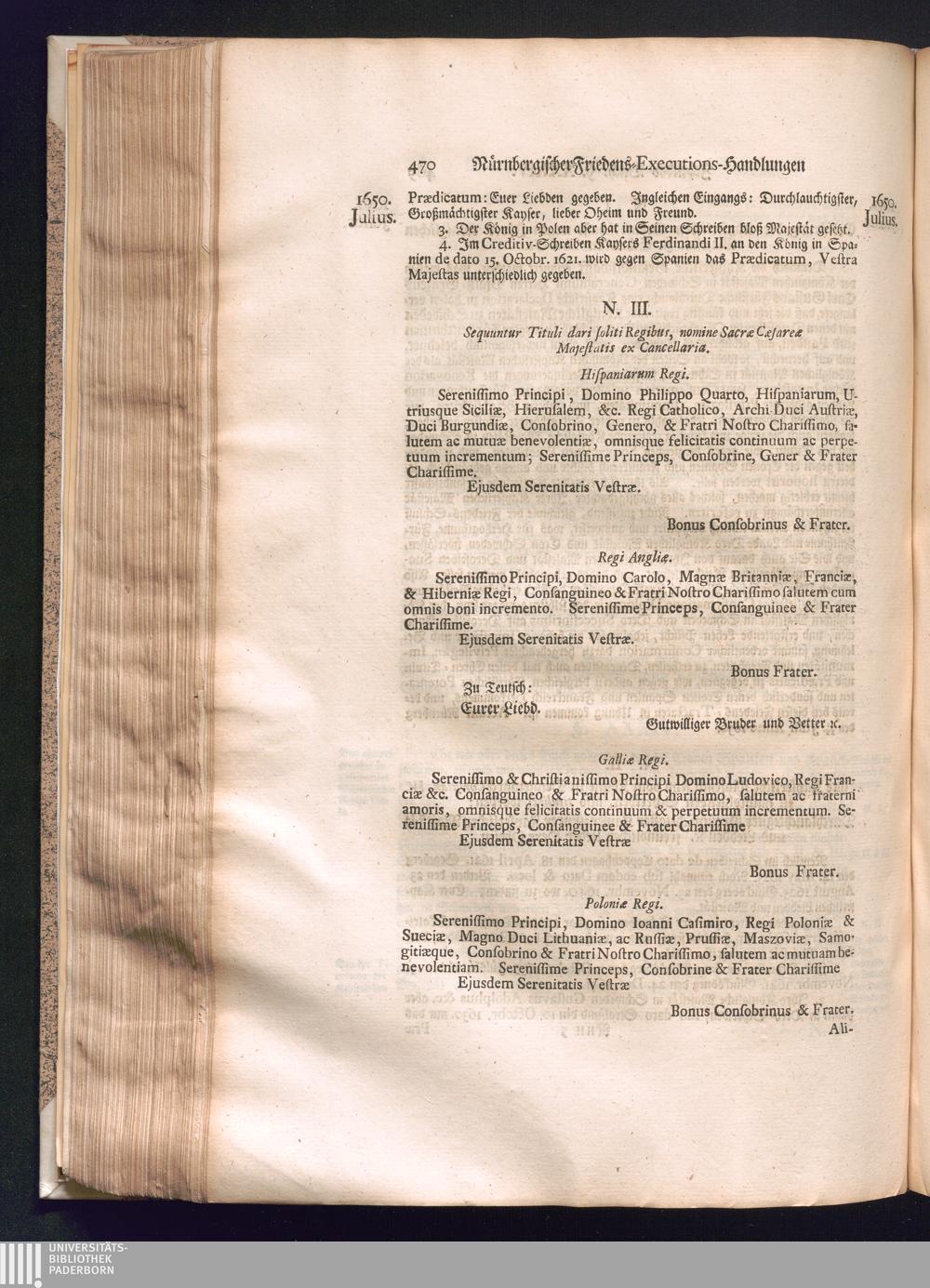 Zweyter und letzter Theil (1737) Worinnen enthalten, wie und welchergestalt die würckliche Vollziehung des Westphälischen Friedens, sowohl in puncto Exauctorationis Militæ und Evacuationis Locorum, als auch und vornehmlich in dem hochwichtigen puncto Restitutionis ex Capite Amnestiæ & Gravaminum, biß zum völligen Schluß des Congressus, Anno 1651, geschehen ist, in einer ausführlichen Historischen Erzehlung, mit beygefügten authentischen Urkunden, auch einem vollständigen Register