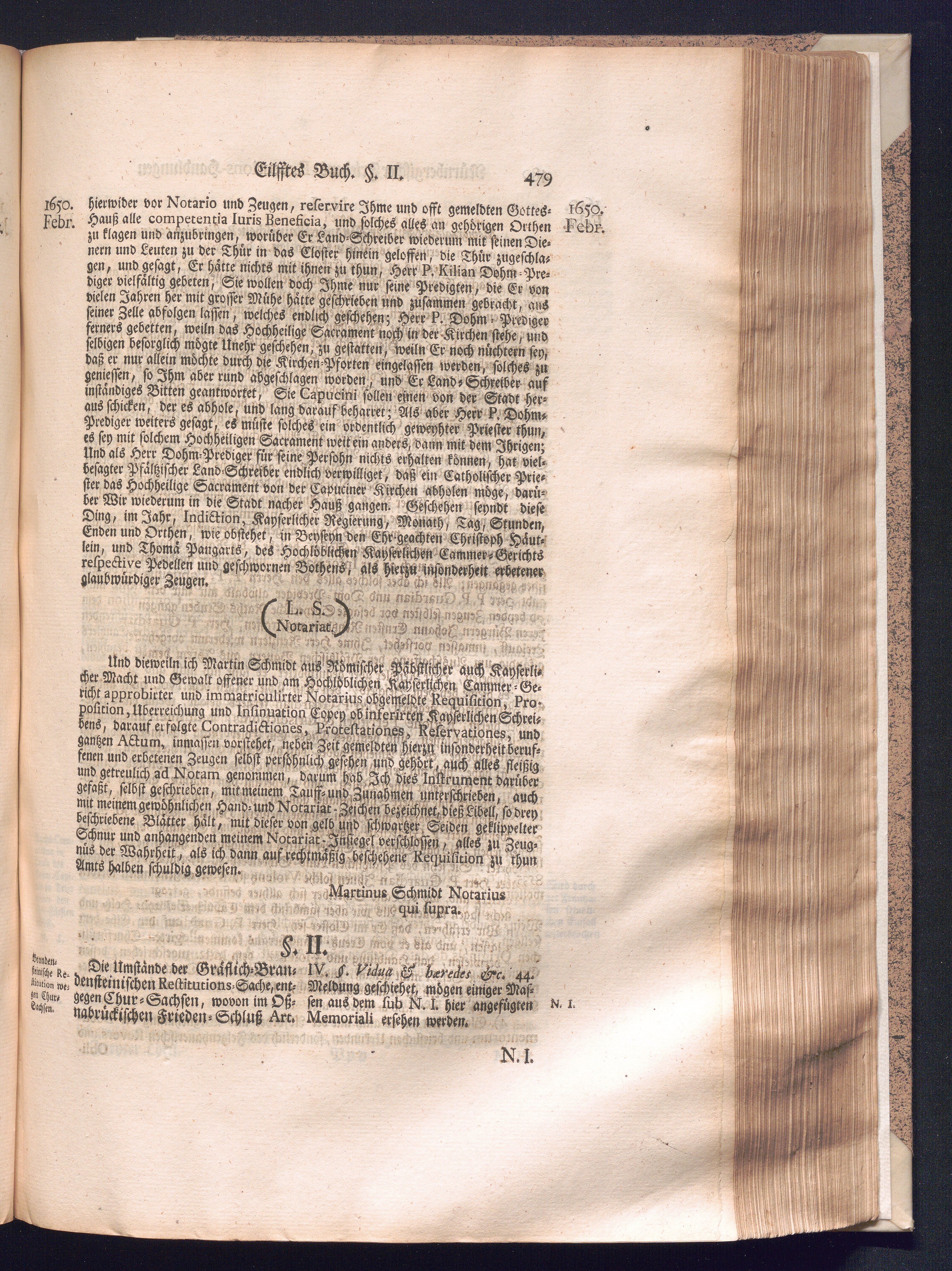 Zweyter und letzter Theil (1737) Worinnen enthalten, wie und welchergestalt die würckliche Vollziehung des Westphälischen Friedens, sowohl in puncto Exauctorationis Militæ und Evacuationis Locorum, als auch und vornehmlich in dem hochwichtigen puncto Restitutionis ex Capite Amnestiæ & Gravaminum, biß zum völligen Schluß des Congressus, Anno 1651, geschehen ist, in einer ausführlichen Historischen Erzehlung, mit beygefügten authentischen Urkunden, auch einem vollständigen Register