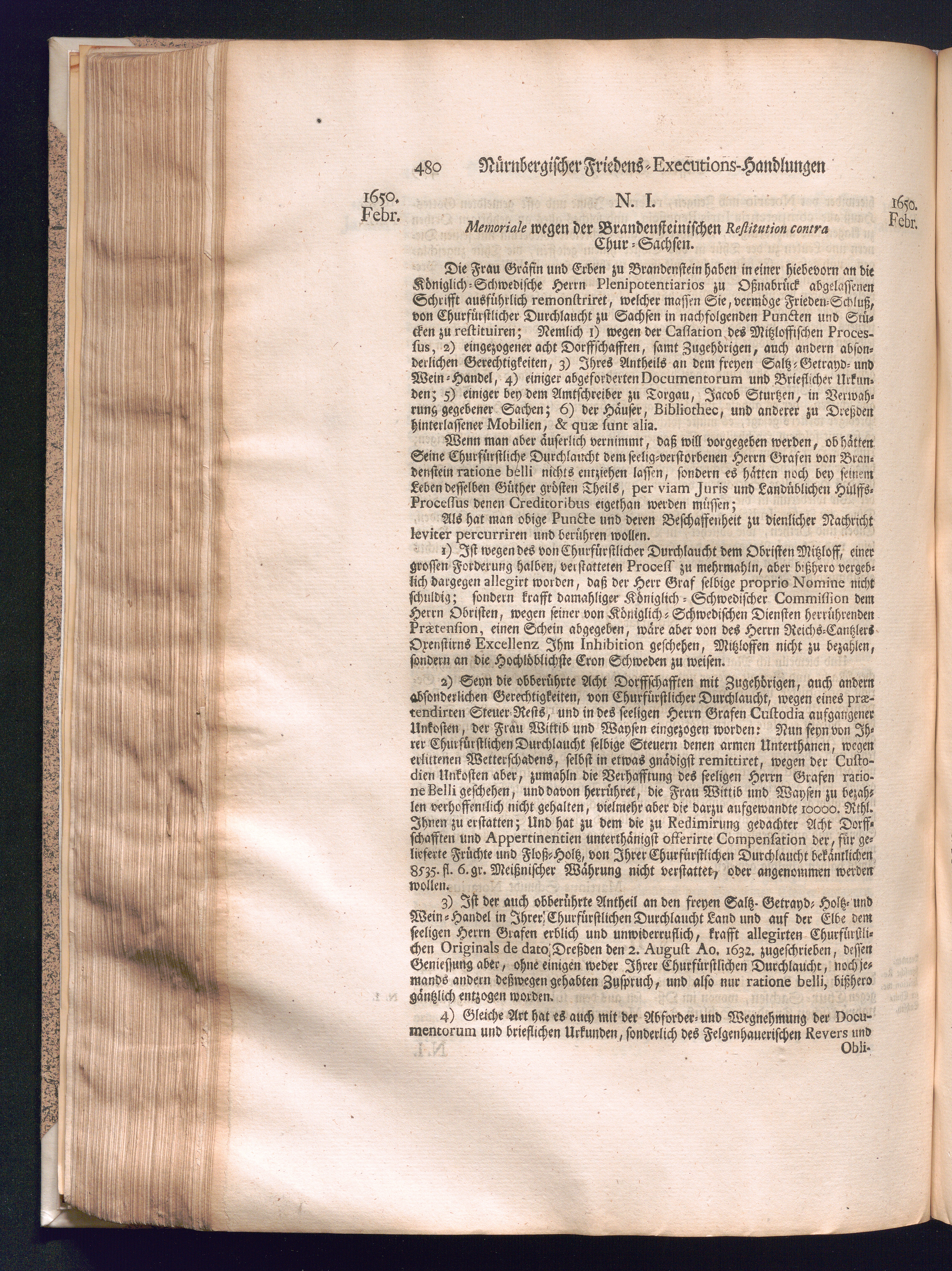 Zweyter und letzter Theil (1737) Worinnen enthalten, wie und welchergestalt die würckliche Vollziehung des Westphälischen Friedens, sowohl in puncto Exauctorationis Militæ und Evacuationis Locorum, als auch und vornehmlich in dem hochwichtigen puncto Restitutionis ex Capite Amnestiæ & Gravaminum, biß zum völligen Schluß des Congressus, Anno 1651, geschehen ist, in einer ausführlichen Historischen Erzehlung, mit beygefügten authentischen Urkunden, auch einem vollständigen Register