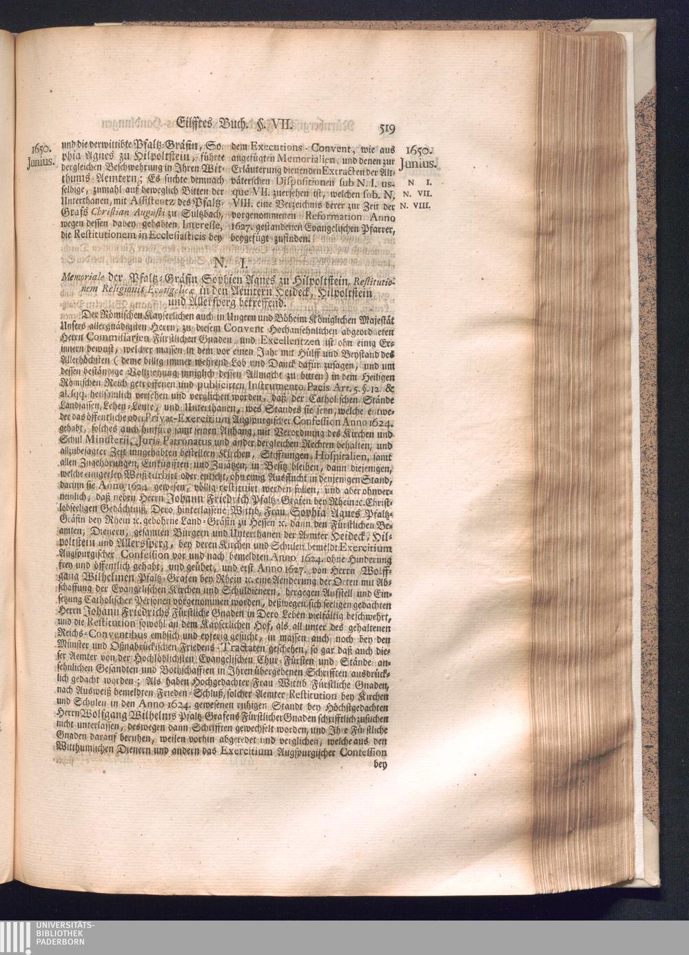 Zweyter und letzter Theil (1737) Worinnen enthalten, wie und welchergestalt die würckliche Vollziehung des Westphälischen Friedens, sowohl in puncto Exauctorationis Militæ und Evacuationis Locorum, als auch und vornehmlich in dem hochwichtigen puncto Restitutionis ex Capite Amnestiæ & Gravaminum, biß zum völligen Schluß des Congressus, Anno 1651, geschehen ist, in einer ausführlichen Historischen Erzehlung, mit beygefügten authentischen Urkunden, auch einem vollständigen Register
