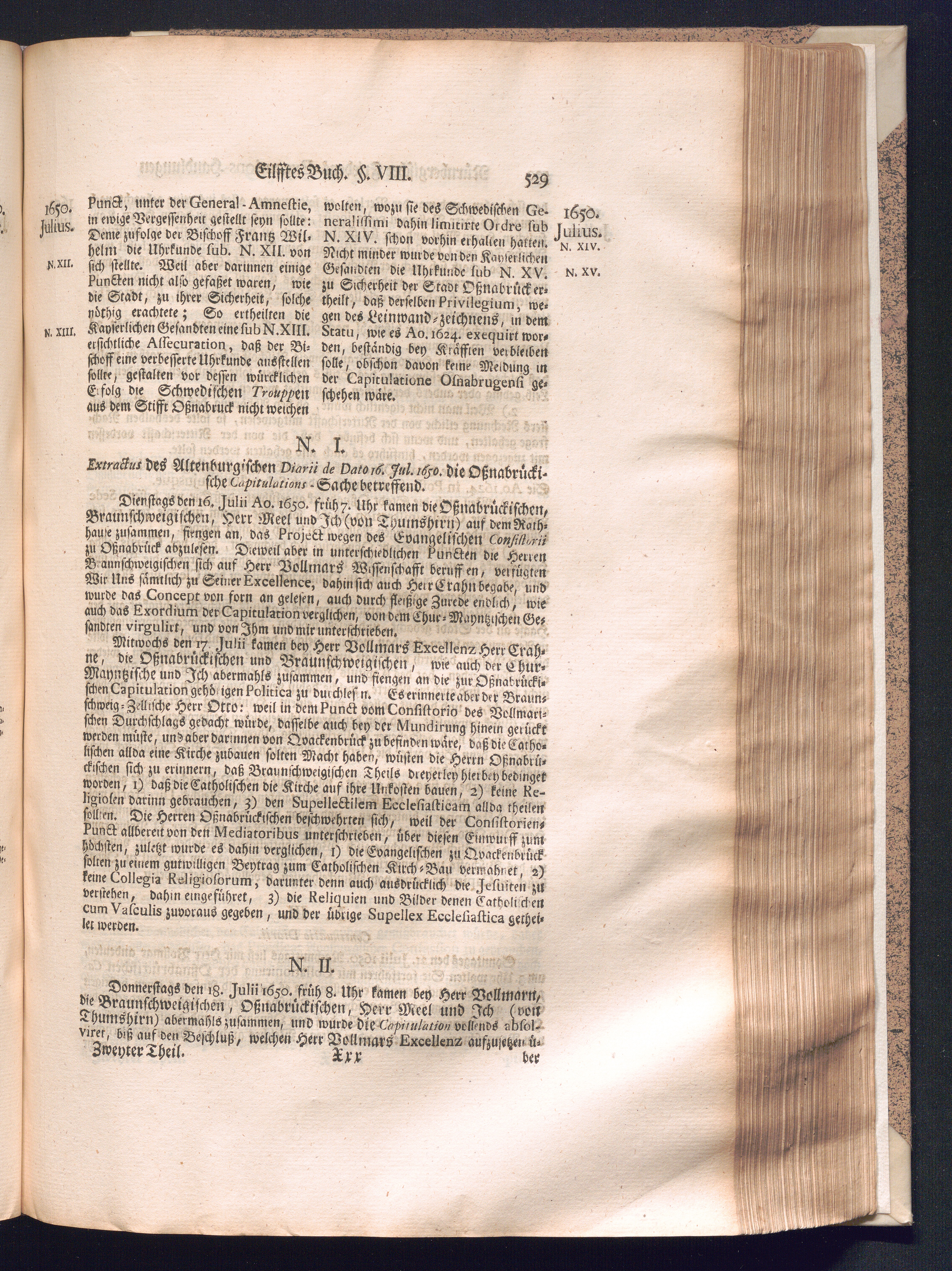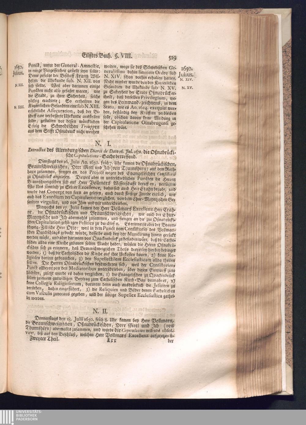Zweyter und letzter Theil (1737) Worinnen enthalten, wie und welchergestalt die würckliche Vollziehung des Westphälischen Friedens, sowohl in puncto Exauctorationis Militæ und Evacuationis Locorum, als auch und vornehmlich in dem hochwichtigen puncto Restitutionis ex Capite Amnestiæ & Gravaminum, biß zum völligen Schluß des Congressus, Anno 1651, geschehen ist, in einer ausführlichen Historischen Erzehlung, mit beygefügten authentischen Urkunden, auch einem vollständigen Register
