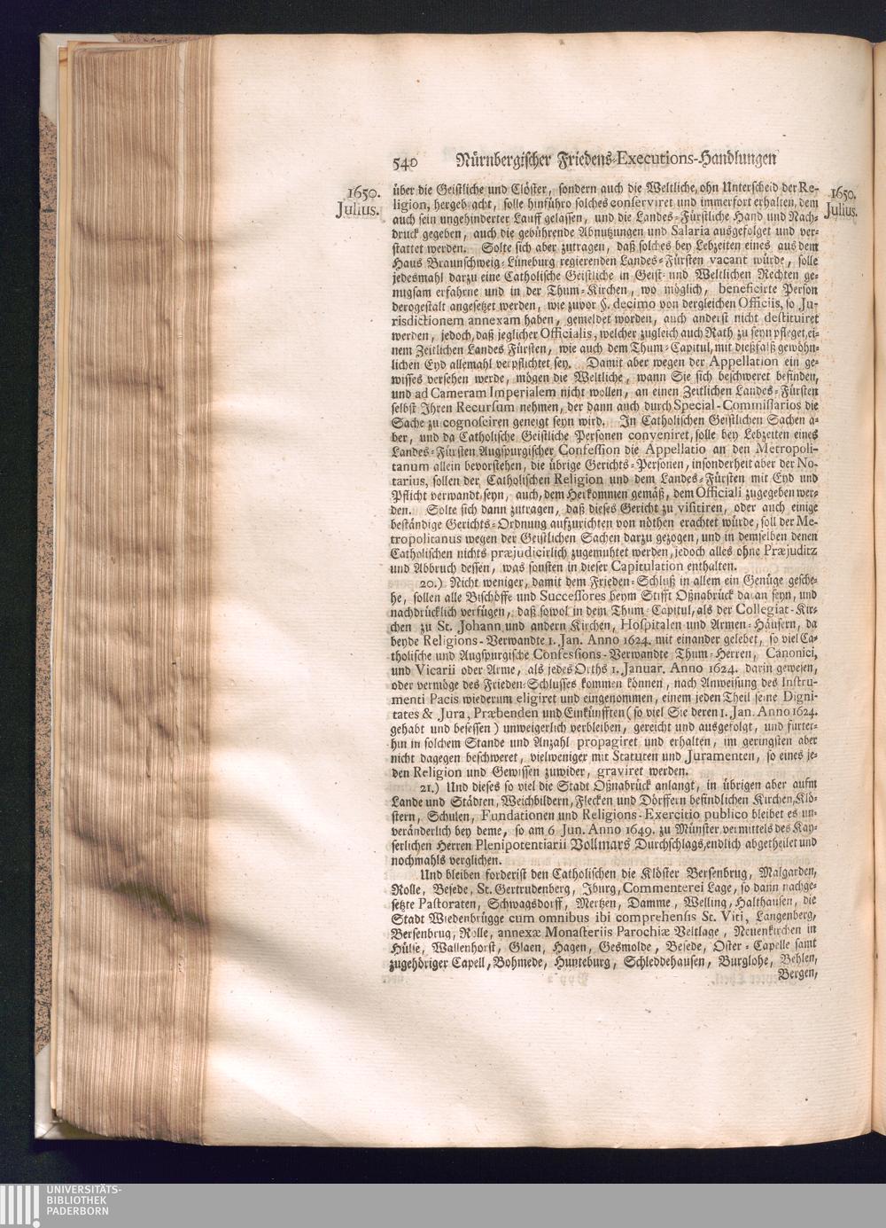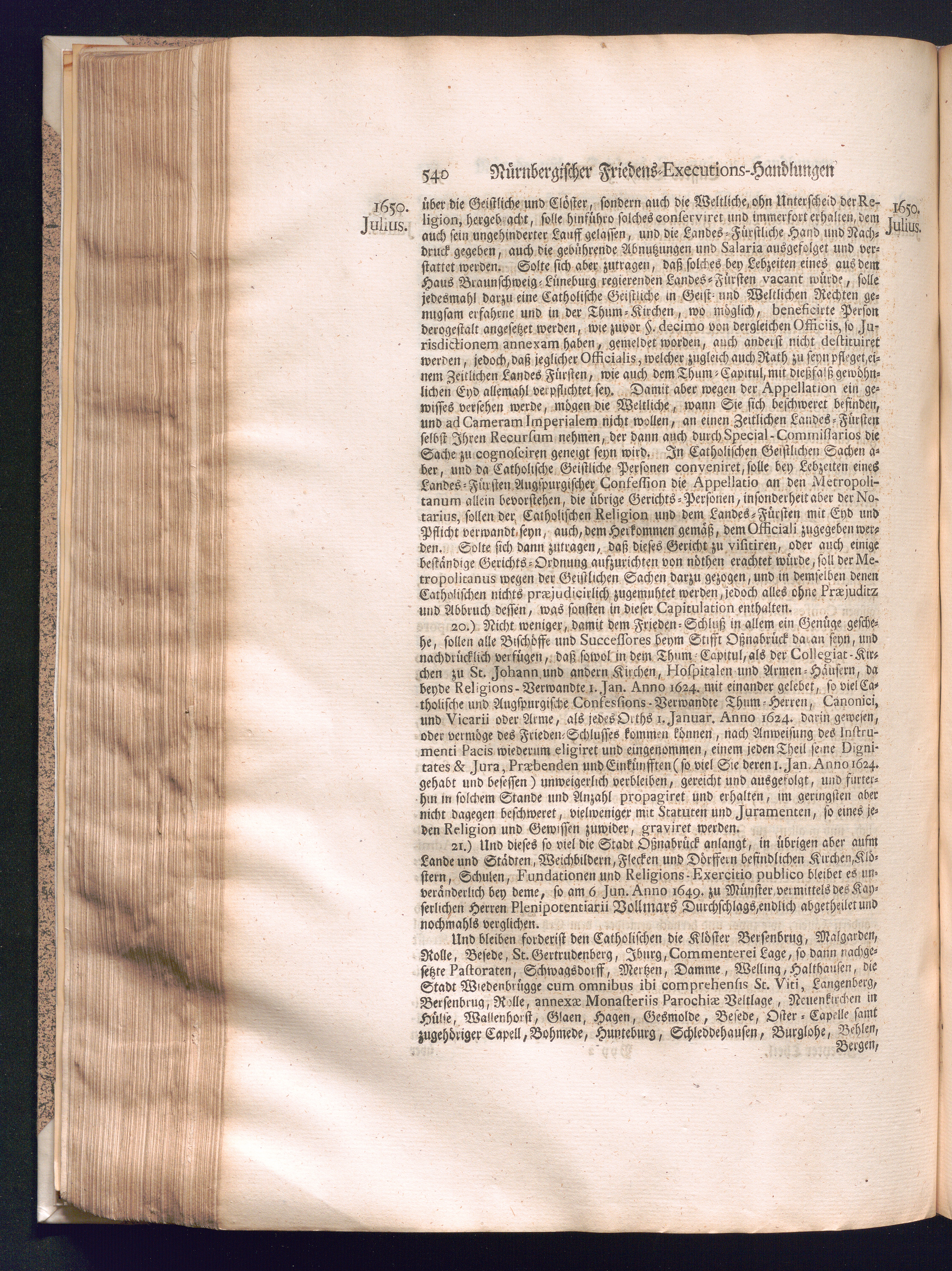 Zweyter und letzter Theil (1737) Worinnen enthalten, wie und welchergestalt die würckliche Vollziehung des Westphälischen Friedens, sowohl in puncto Exauctorationis Militæ und Evacuationis Locorum, als auch und vornehmlich in dem hochwichtigen puncto Restitutionis ex Capite Amnestiæ & Gravaminum, biß zum völligen Schluß des Congressus, Anno 1651, geschehen ist, in einer ausführlichen Historischen Erzehlung, mit beygefügten authentischen Urkunden, auch einem vollständigen Register