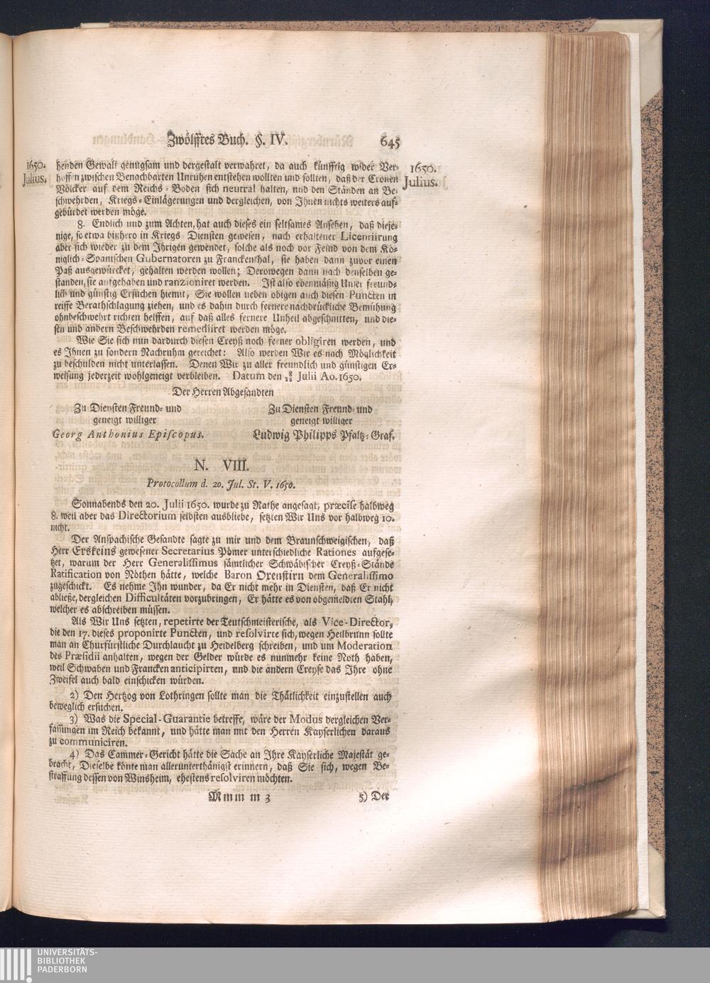 Zweyter und letzter Theil (1737) Worinnen enthalten, wie und welchergestalt die würckliche Vollziehung des Westphälischen Friedens, sowohl in puncto Exauctorationis Militæ und Evacuationis Locorum, als auch und vornehmlich in dem hochwichtigen puncto Restitutionis ex Capite Amnestiæ & Gravaminum, biß zum völligen Schluß des Congressus, Anno 1651, geschehen ist, in einer ausführlichen Historischen Erzehlung, mit beygefügten authentischen Urkunden, auch einem vollständigen Register