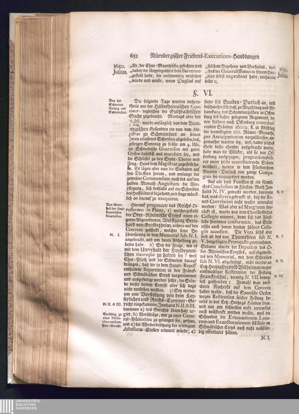 Zweyter und letzter Theil (1737) Worinnen enthalten, wie und welchergestalt die würckliche Vollziehung des Westphälischen Friedens, sowohl in puncto Exauctorationis Militæ und Evacuationis Locorum, als auch und vornehmlich in dem hochwichtigen puncto Restitutionis ex Capite Amnestiæ & Gravaminum, biß zum völligen Schluß des Congressus, Anno 1651, geschehen ist, in einer ausführlichen Historischen Erzehlung, mit beygefügten authentischen Urkunden, auch einem vollständigen Register