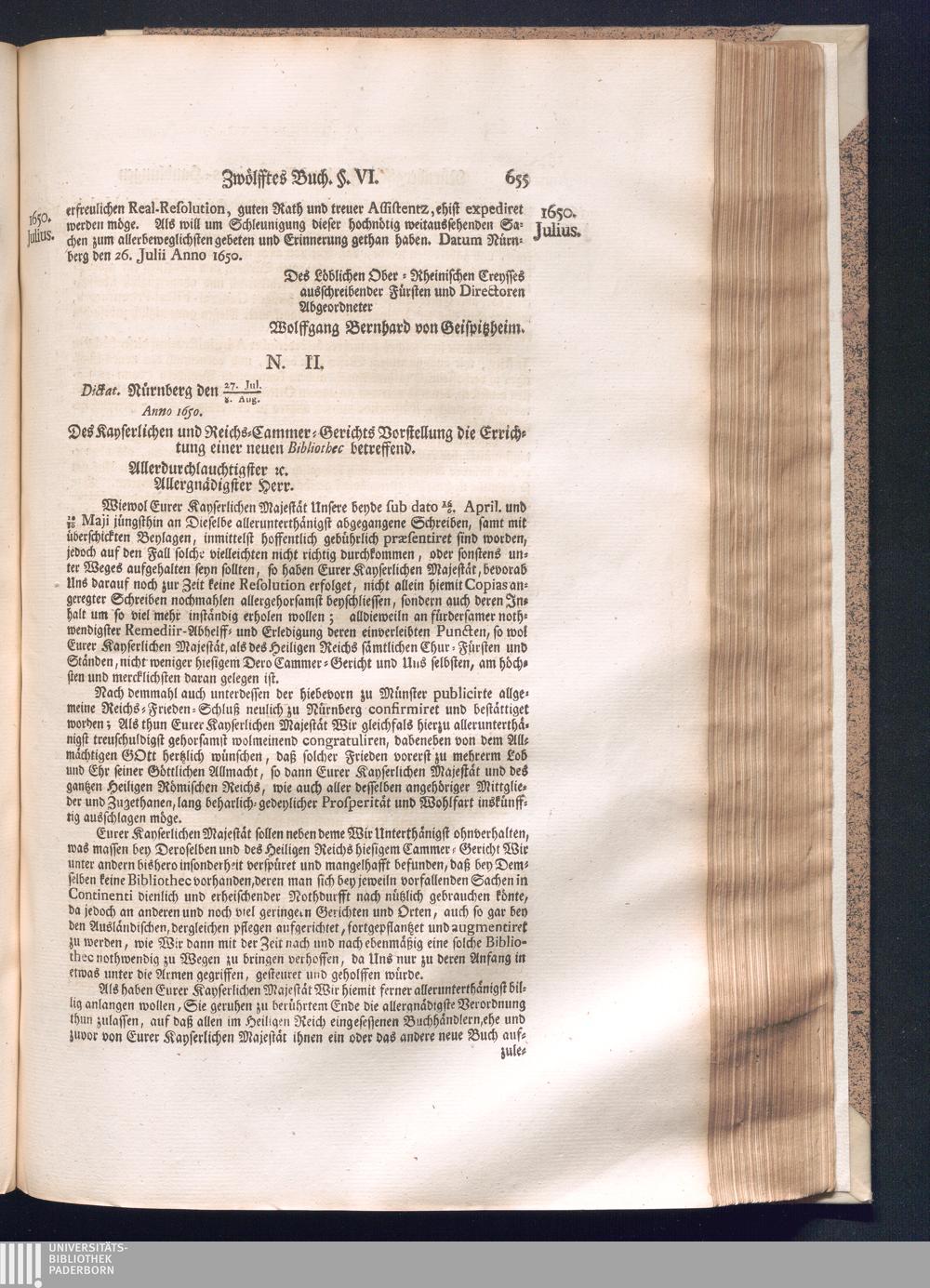 Zweyter und letzter Theil (1737) Worinnen enthalten, wie und welchergestalt die würckliche Vollziehung des Westphälischen Friedens, sowohl in puncto Exauctorationis Militæ und Evacuationis Locorum, als auch und vornehmlich in dem hochwichtigen puncto Restitutionis ex Capite Amnestiæ & Gravaminum, biß zum völligen Schluß des Congressus, Anno 1651, geschehen ist, in einer ausführlichen Historischen Erzehlung, mit beygefügten authentischen Urkunden, auch einem vollständigen Register