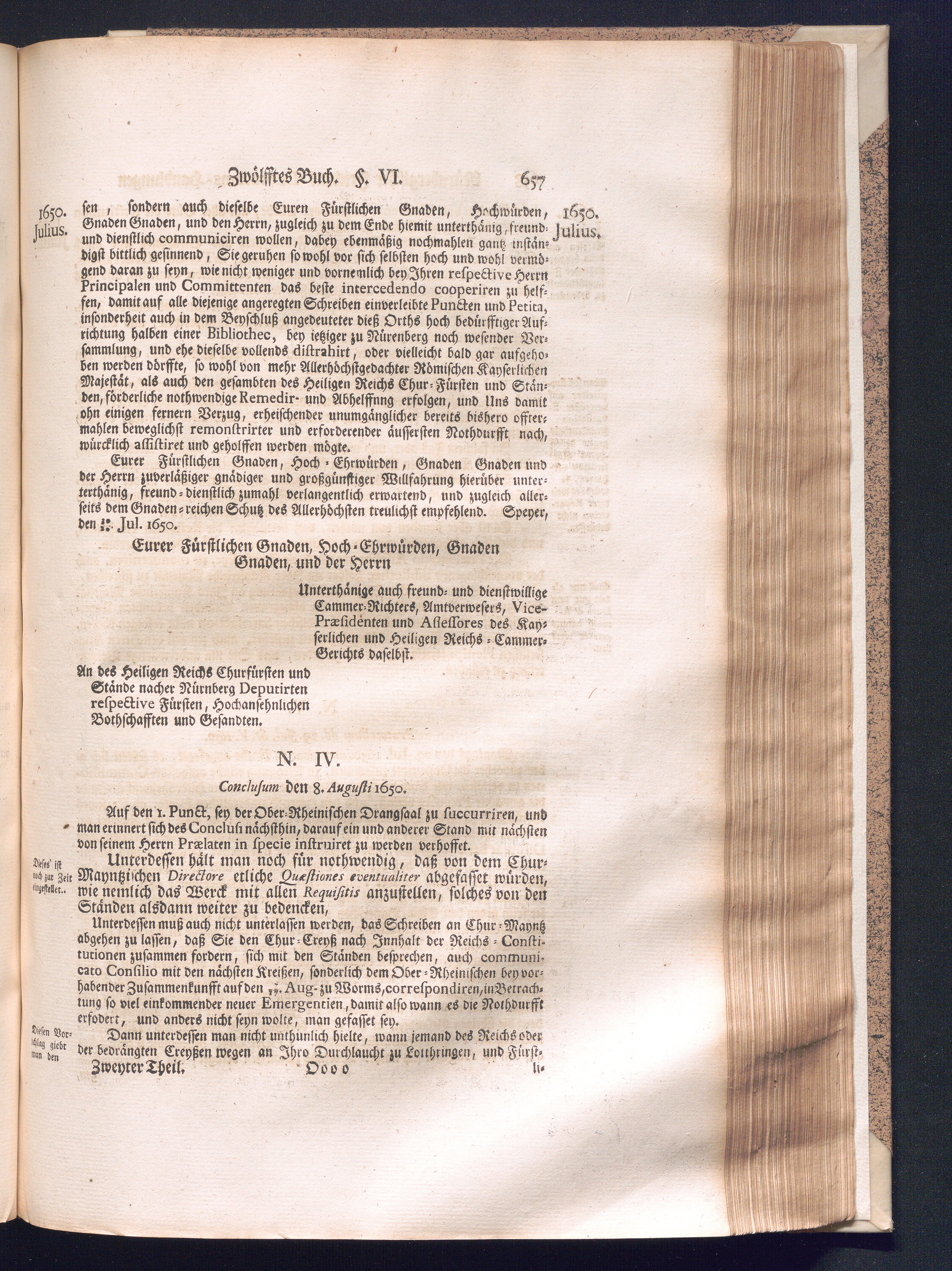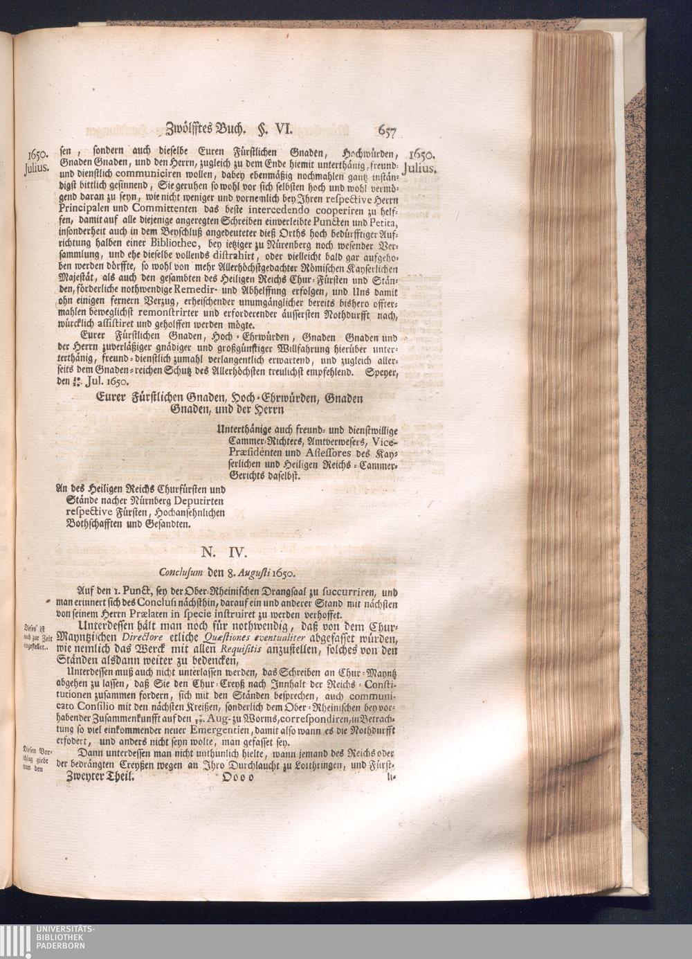 Zweyter und letzter Theil (1737) Worinnen enthalten, wie und welchergestalt die würckliche Vollziehung des Westphälischen Friedens, sowohl in puncto Exauctorationis Militæ und Evacuationis Locorum, als auch und vornehmlich in dem hochwichtigen puncto Restitutionis ex Capite Amnestiæ & Gravaminum, biß zum völligen Schluß des Congressus, Anno 1651, geschehen ist, in einer ausführlichen Historischen Erzehlung, mit beygefügten authentischen Urkunden, auch einem vollständigen Register