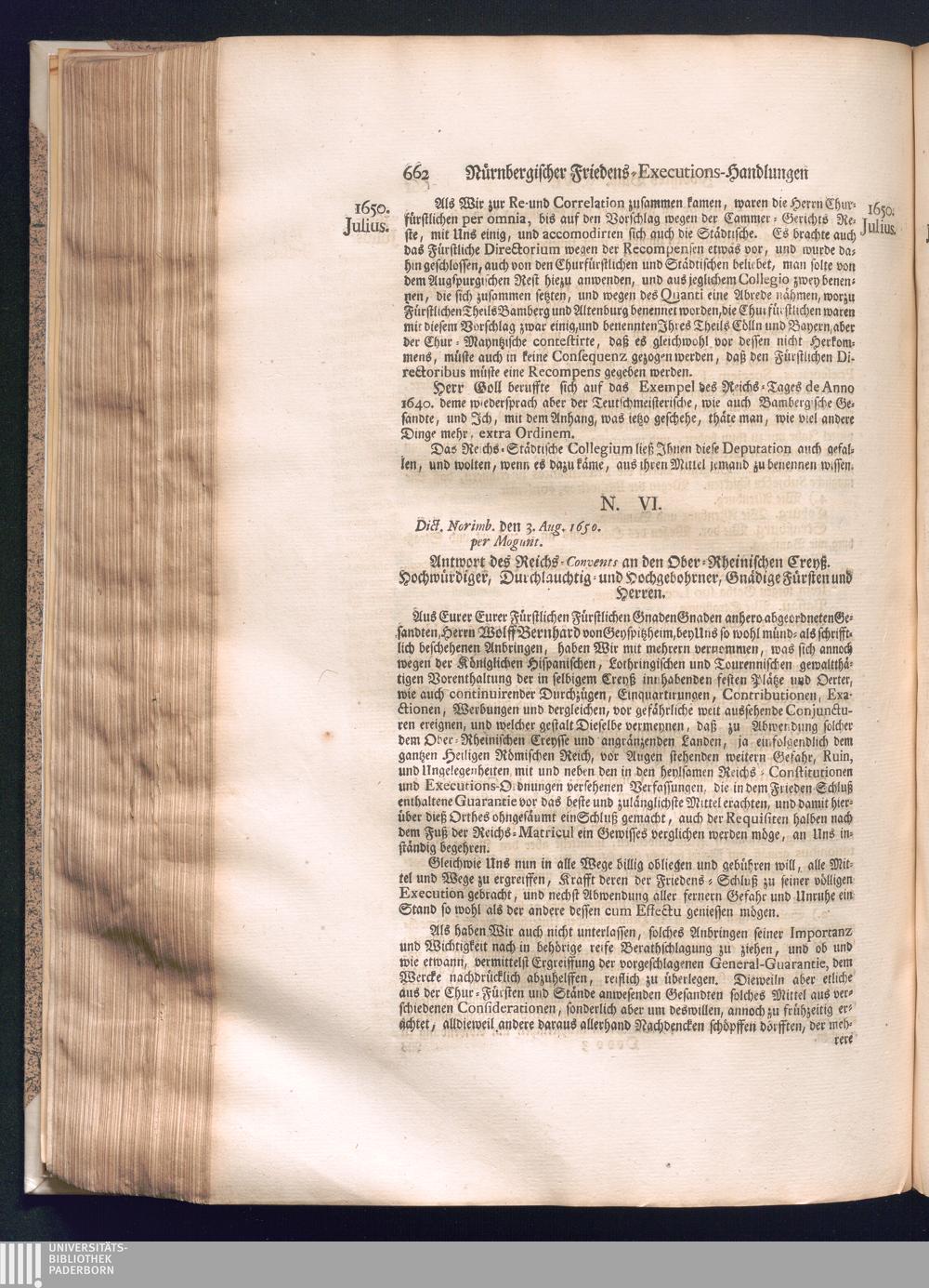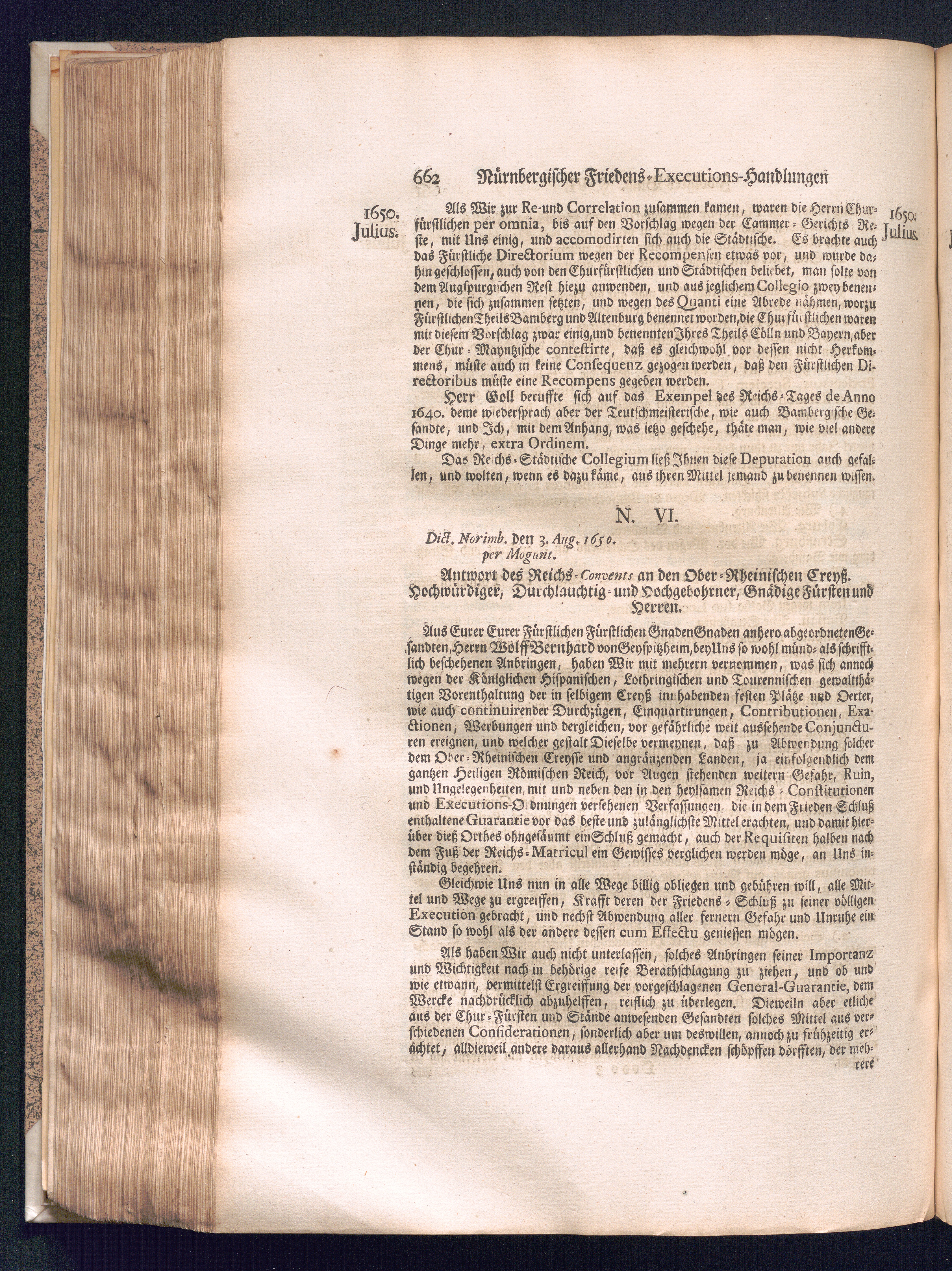 Zweyter und letzter Theil (1737) Worinnen enthalten, wie und welchergestalt die würckliche Vollziehung des Westphälischen Friedens, sowohl in puncto Exauctorationis Militæ und Evacuationis Locorum, als auch und vornehmlich in dem hochwichtigen puncto Restitutionis ex Capite Amnestiæ & Gravaminum, biß zum völligen Schluß des Congressus, Anno 1651, geschehen ist, in einer ausführlichen Historischen Erzehlung, mit beygefügten authentischen Urkunden, auch einem vollständigen Register