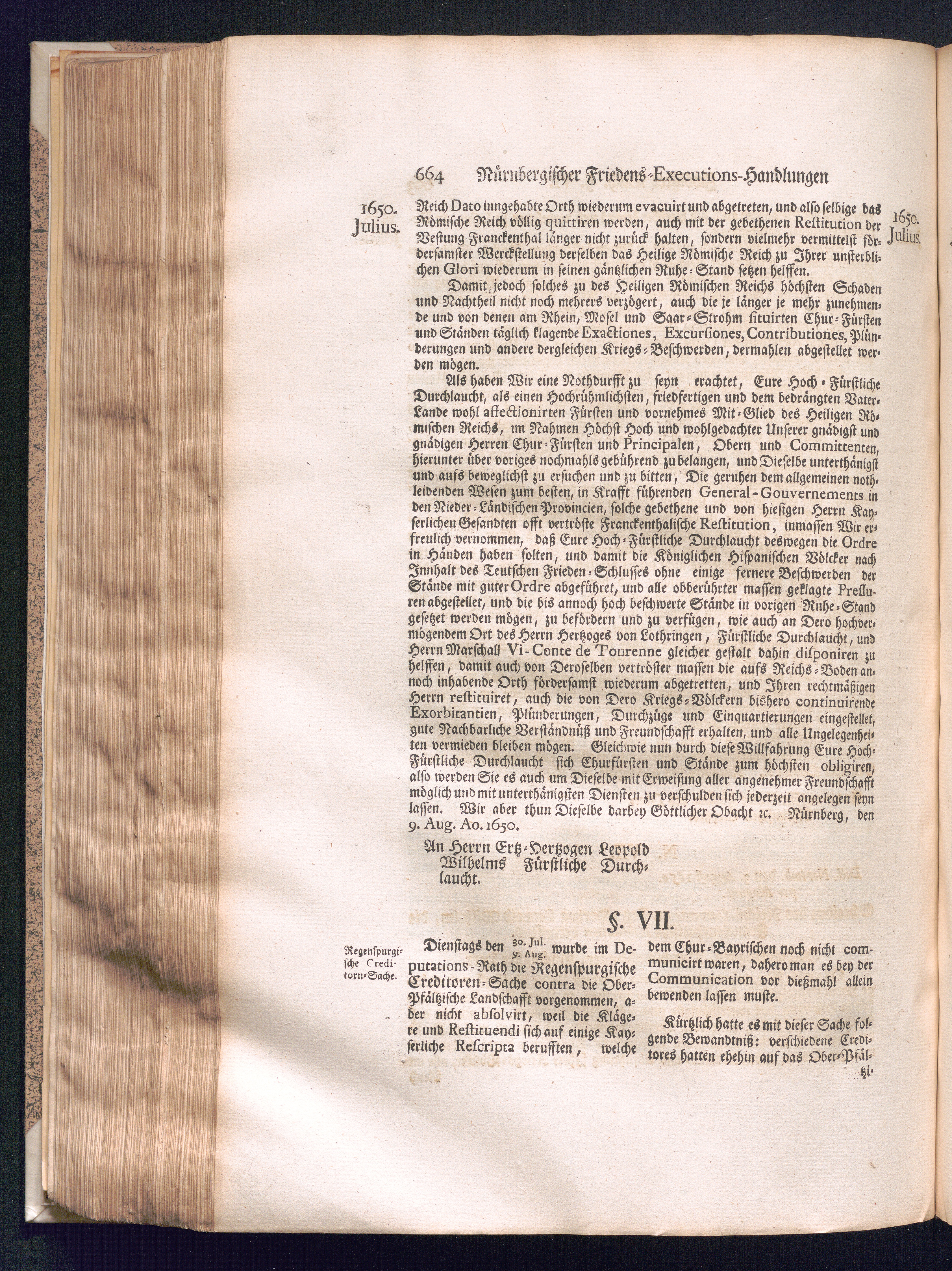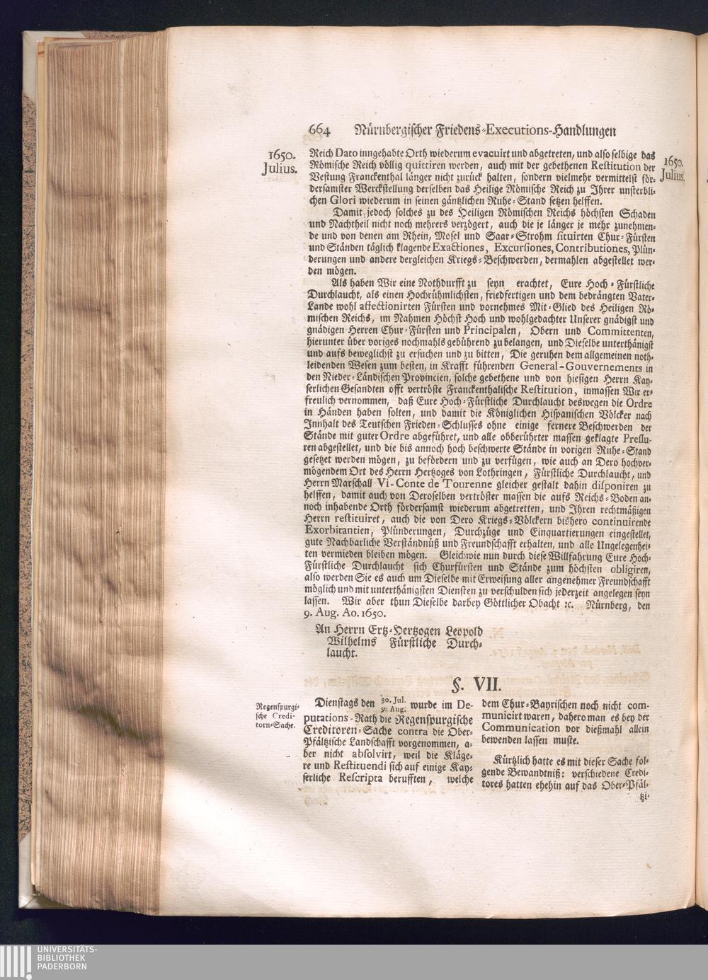 Zweyter und letzter Theil (1737) Worinnen enthalten, wie und welchergestalt die würckliche Vollziehung des Westphälischen Friedens, sowohl in puncto Exauctorationis Militæ und Evacuationis Locorum, als auch und vornehmlich in dem hochwichtigen puncto Restitutionis ex Capite Amnestiæ & Gravaminum, biß zum völligen Schluß des Congressus, Anno 1651, geschehen ist, in einer ausführlichen Historischen Erzehlung, mit beygefügten authentischen Urkunden, auch einem vollständigen Register