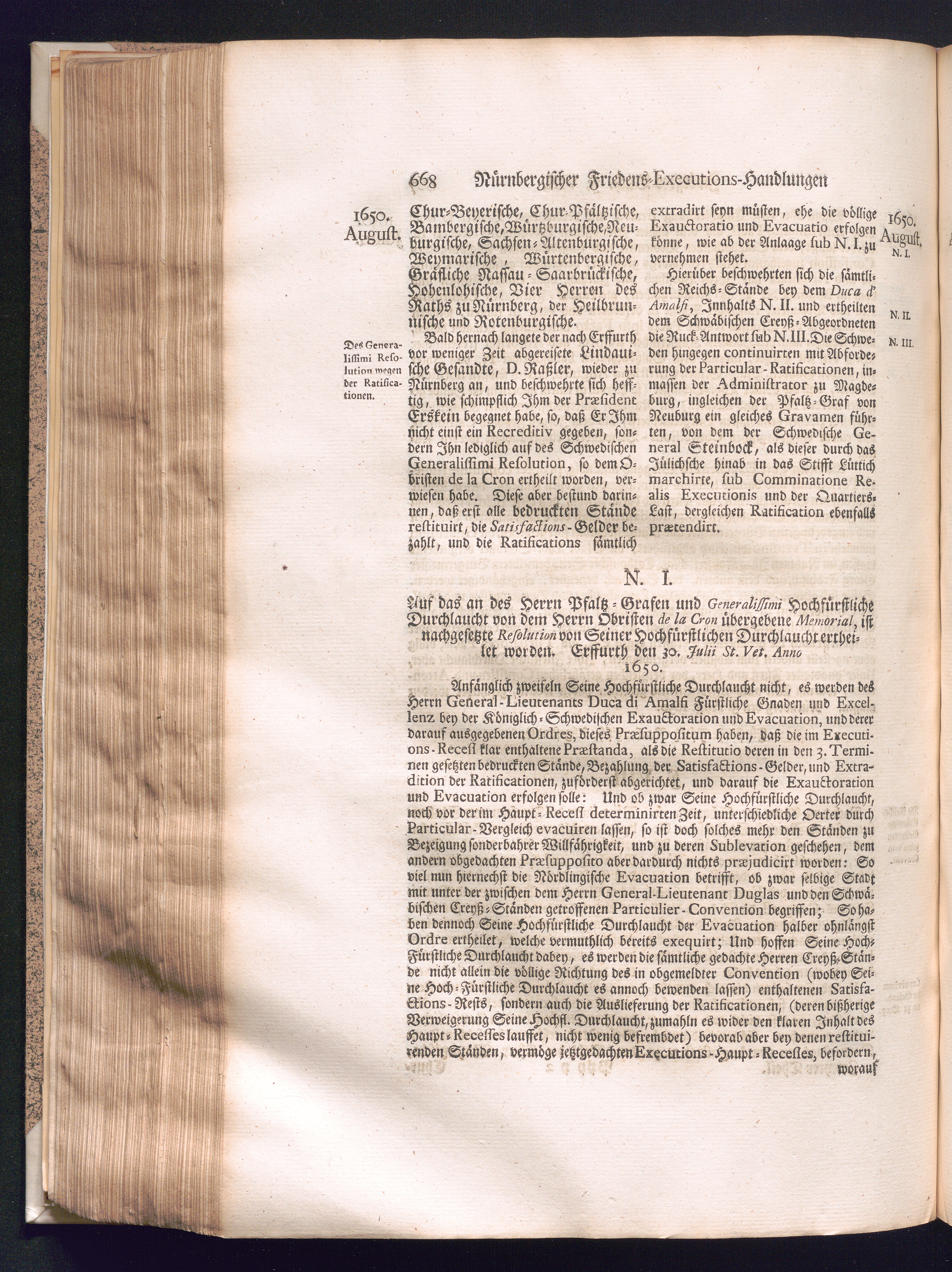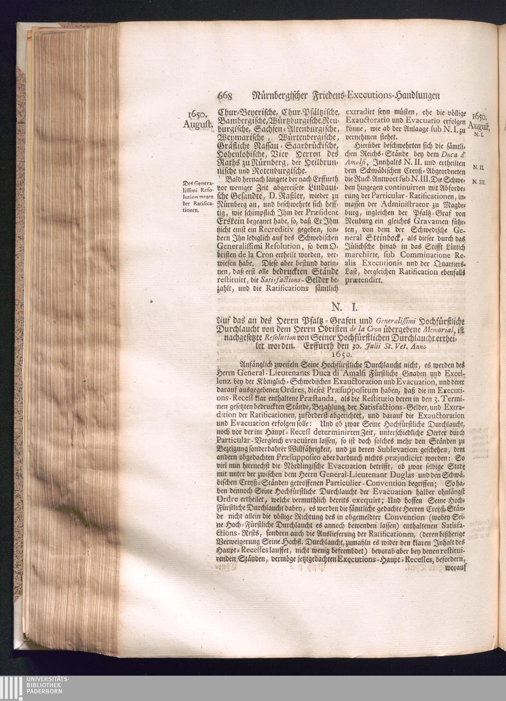 Zweyter und letzter Theil (1737) Worinnen enthalten, wie und welchergestalt die würckliche Vollziehung des Westphälischen Friedens, sowohl in puncto Exauctorationis Militæ und Evacuationis Locorum, als auch und vornehmlich in dem hochwichtigen puncto Restitutionis ex Capite Amnestiæ & Gravaminum, biß zum völligen Schluß des Congressus, Anno 1651, geschehen ist, in einer ausführlichen Historischen Erzehlung, mit beygefügten authentischen Urkunden, auch einem vollständigen Register