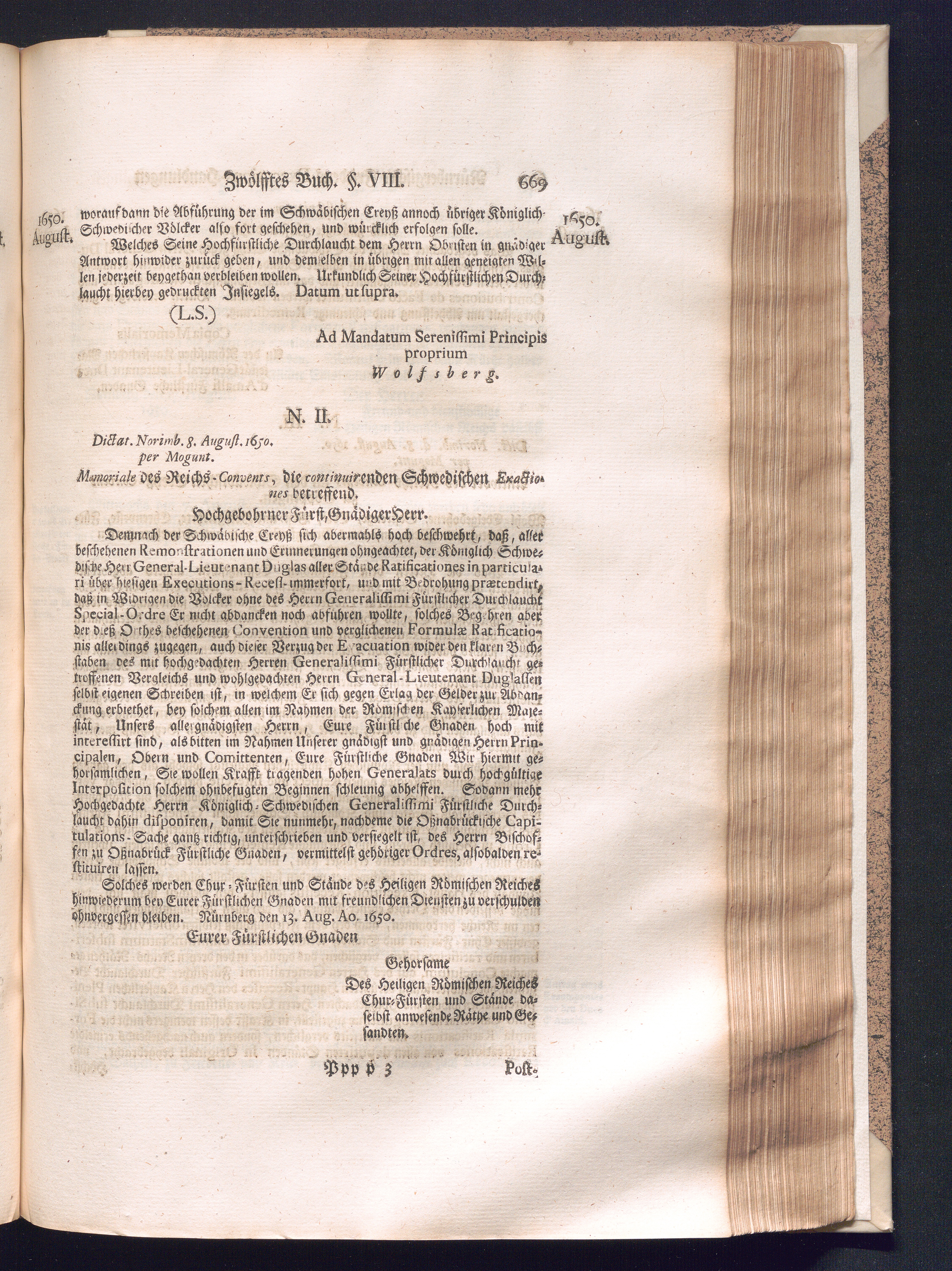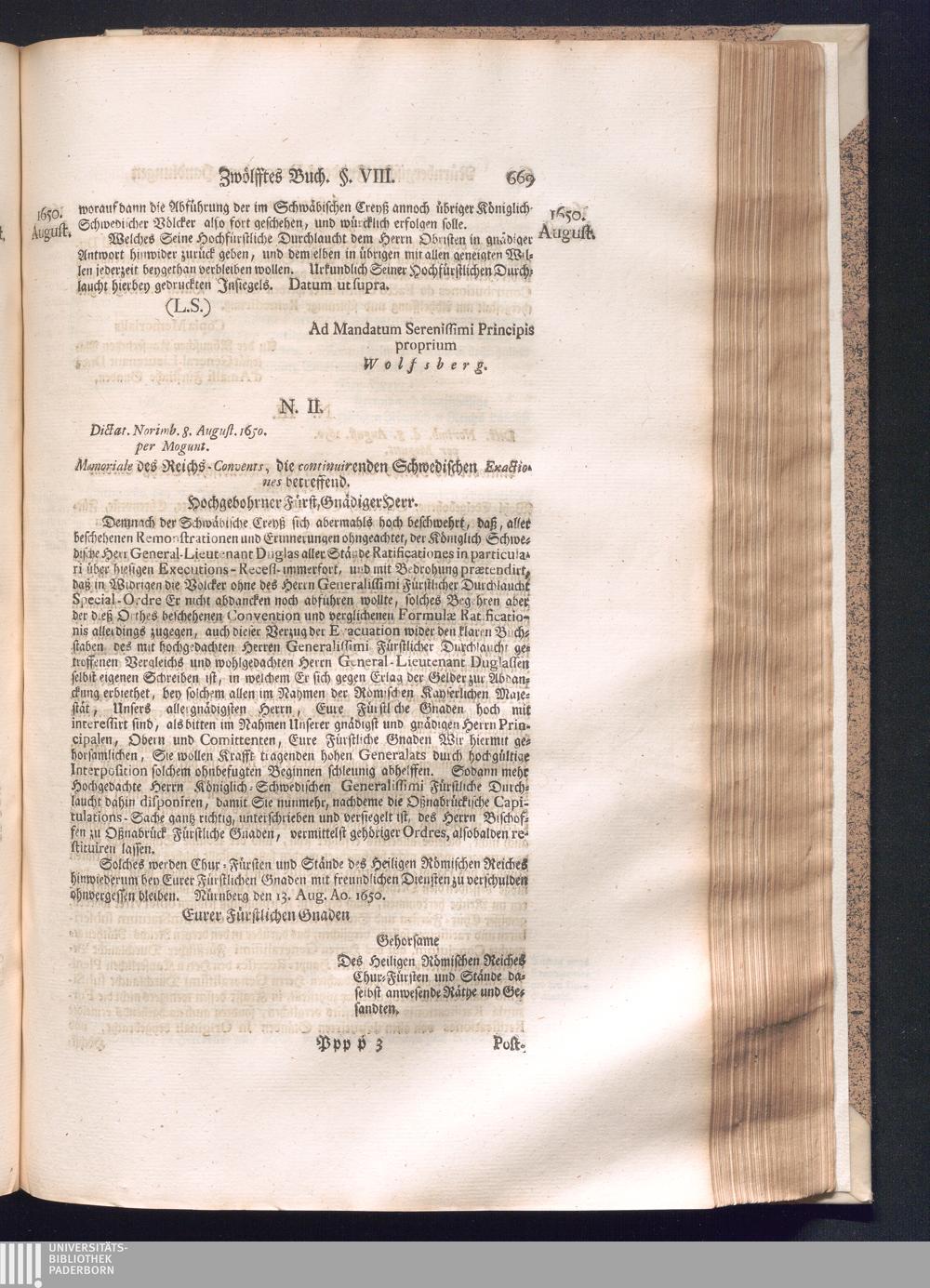 Zweyter und letzter Theil (1737) Worinnen enthalten, wie und welchergestalt die würckliche Vollziehung des Westphälischen Friedens, sowohl in puncto Exauctorationis Militæ und Evacuationis Locorum, als auch und vornehmlich in dem hochwichtigen puncto Restitutionis ex Capite Amnestiæ & Gravaminum, biß zum völligen Schluß des Congressus, Anno 1651, geschehen ist, in einer ausführlichen Historischen Erzehlung, mit beygefügten authentischen Urkunden, auch einem vollständigen Register