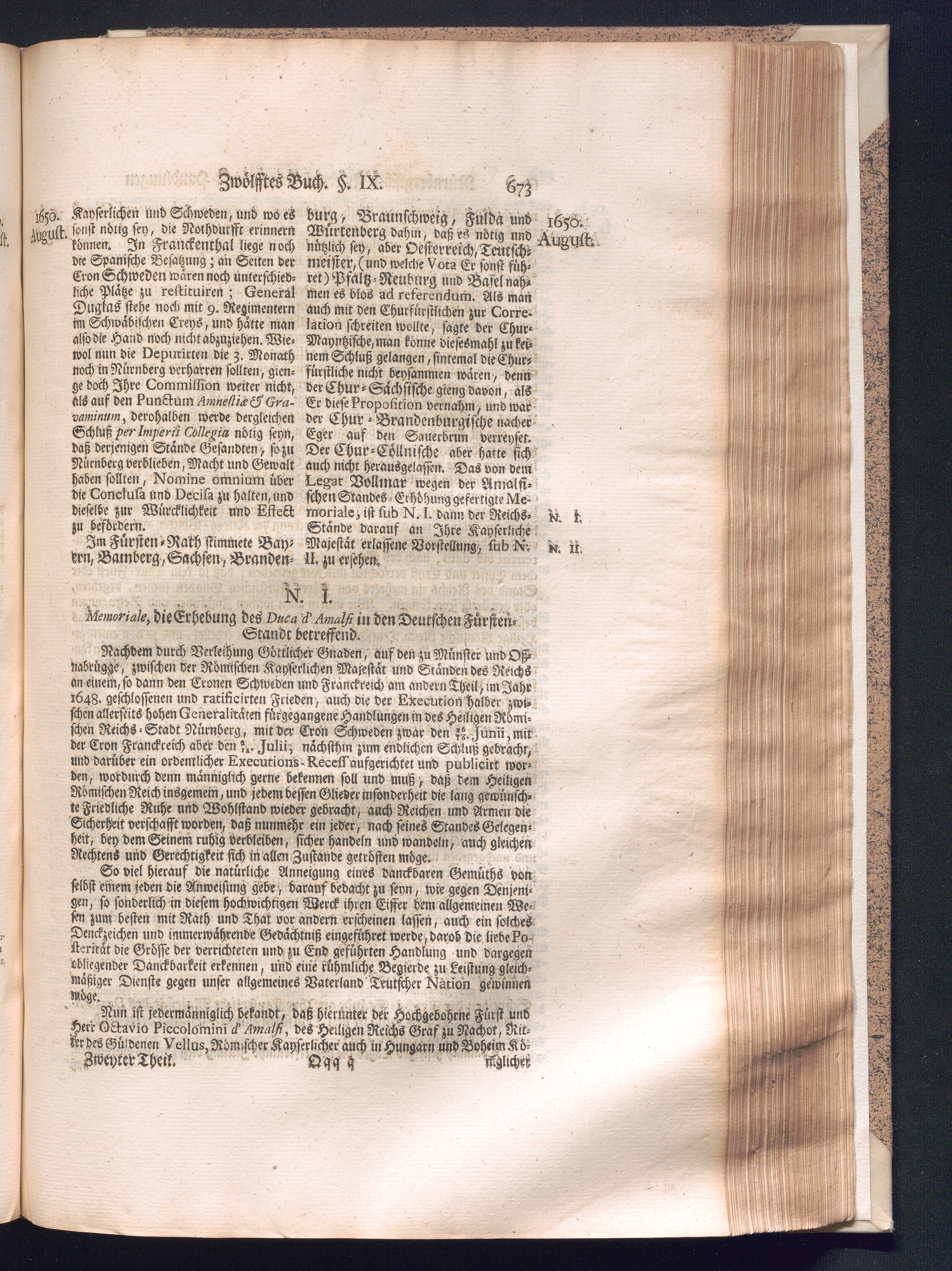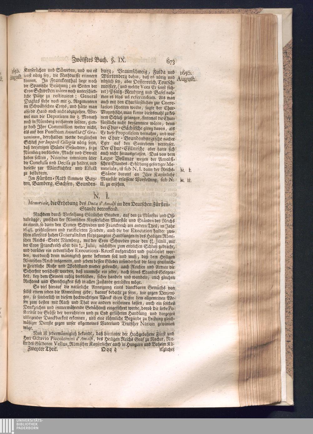 Zweyter und letzter Theil (1737) Worinnen enthalten, wie und welchergestalt die würckliche Vollziehung des Westphälischen Friedens, sowohl in puncto Exauctorationis Militæ und Evacuationis Locorum, als auch und vornehmlich in dem hochwichtigen puncto Restitutionis ex Capite Amnestiæ & Gravaminum, biß zum völligen Schluß des Congressus, Anno 1651, geschehen ist, in einer ausführlichen Historischen Erzehlung, mit beygefügten authentischen Urkunden, auch einem vollständigen Register