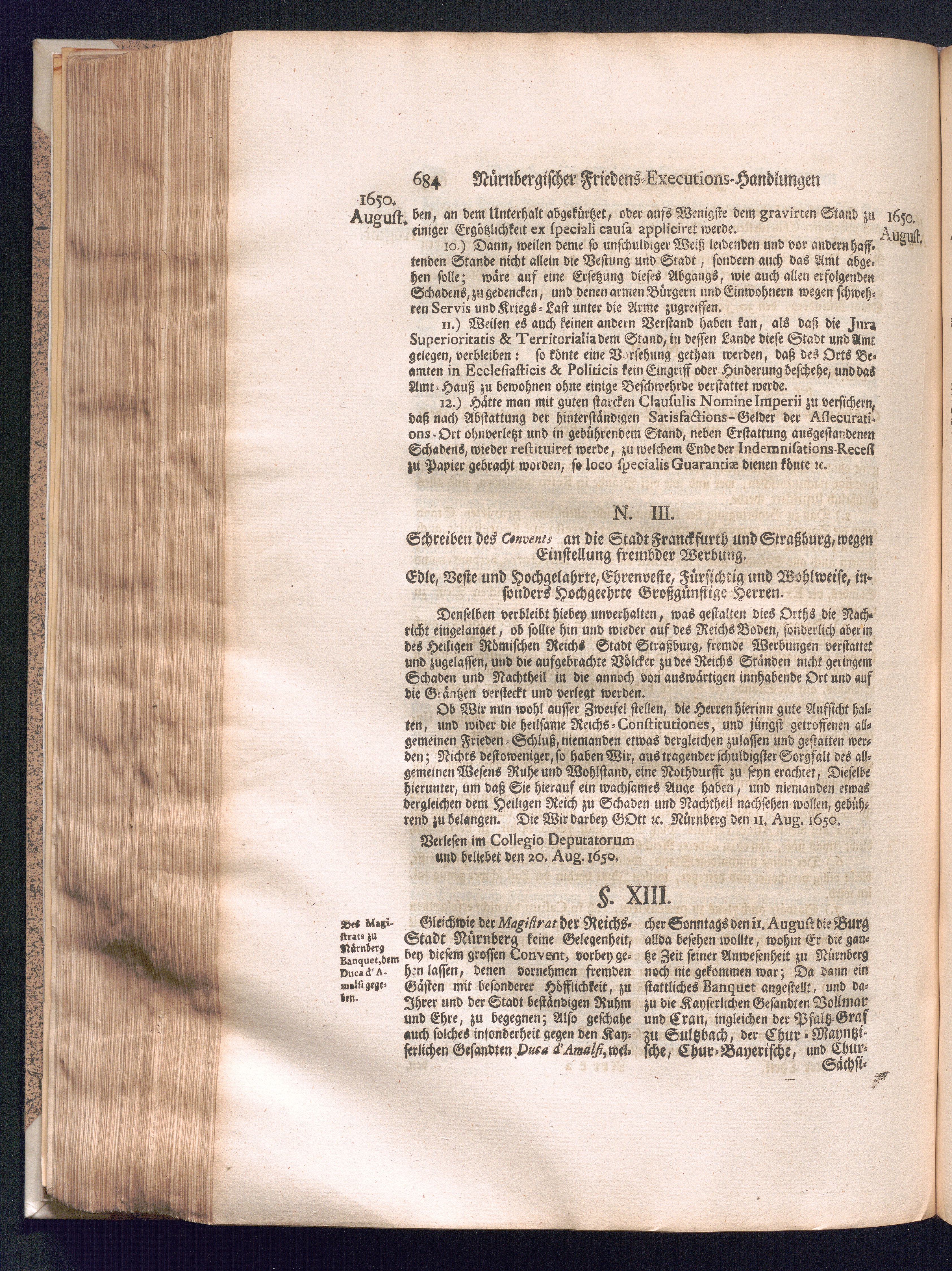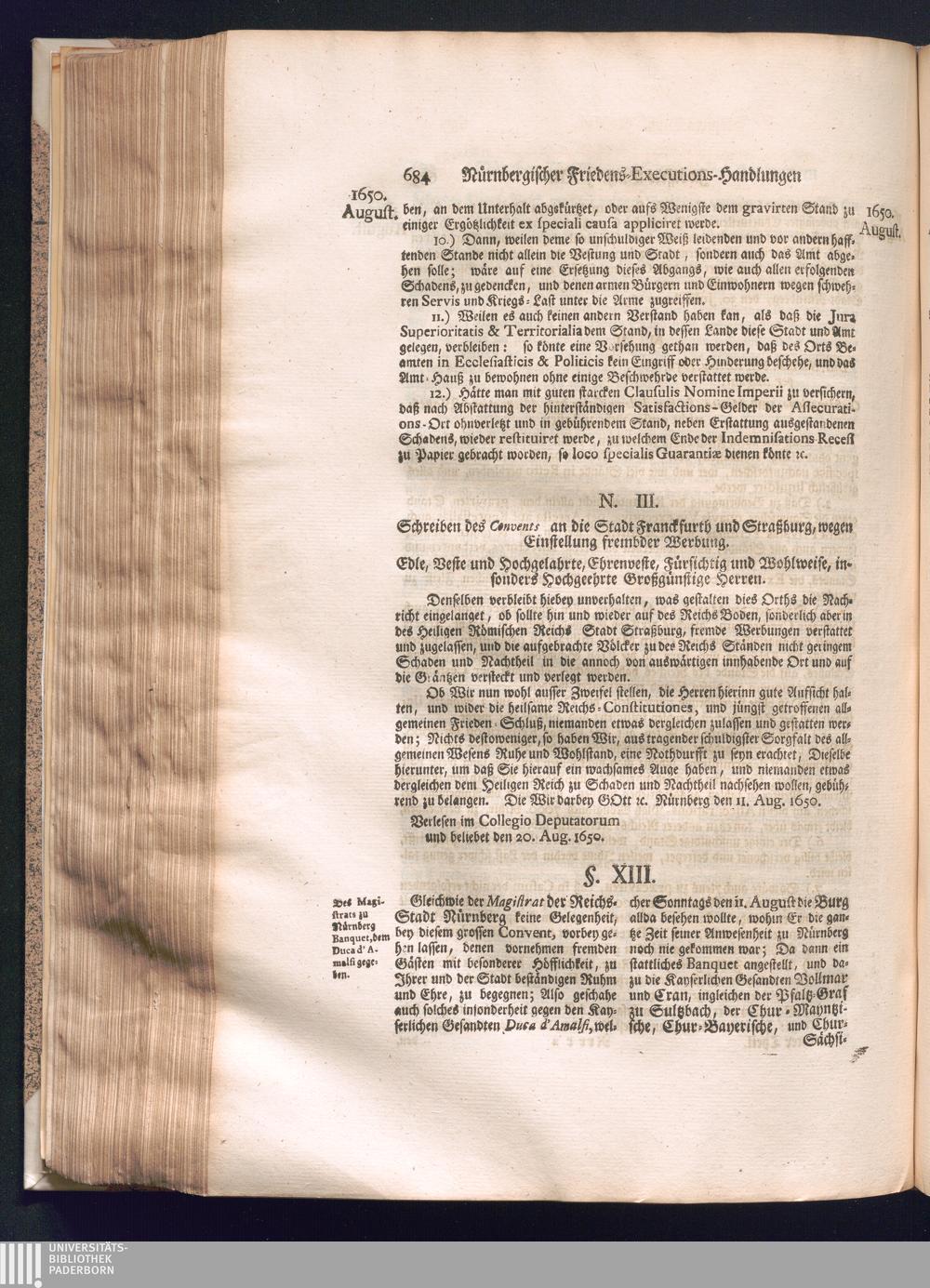 Zweyter und letzter Theil (1737) Worinnen enthalten, wie und welchergestalt die würckliche Vollziehung des Westphälischen Friedens, sowohl in puncto Exauctorationis Militæ und Evacuationis Locorum, als auch und vornehmlich in dem hochwichtigen puncto Restitutionis ex Capite Amnestiæ & Gravaminum, biß zum völligen Schluß des Congressus, Anno 1651, geschehen ist, in einer ausführlichen Historischen Erzehlung, mit beygefügten authentischen Urkunden, auch einem vollständigen Register