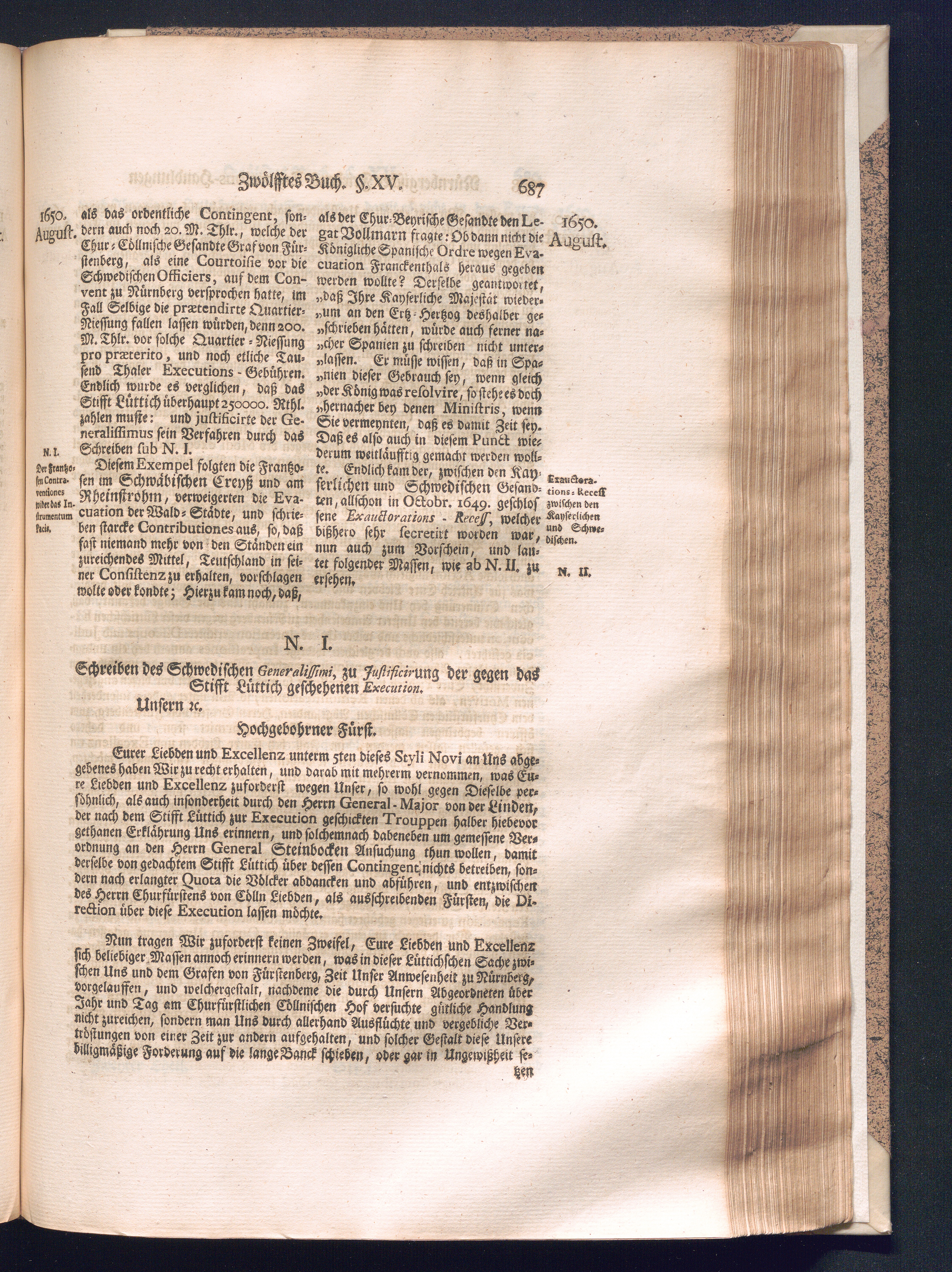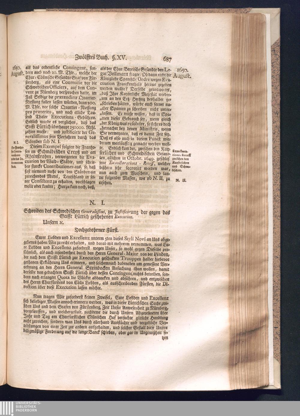 Zweyter und letzter Theil (1737) Worinnen enthalten, wie und welchergestalt die würckliche Vollziehung des Westphälischen Friedens, sowohl in puncto Exauctorationis Militæ und Evacuationis Locorum, als auch und vornehmlich in dem hochwichtigen puncto Restitutionis ex Capite Amnestiæ & Gravaminum, biß zum völligen Schluß des Congressus, Anno 1651, geschehen ist, in einer ausführlichen Historischen Erzehlung, mit beygefügten authentischen Urkunden, auch einem vollständigen Register