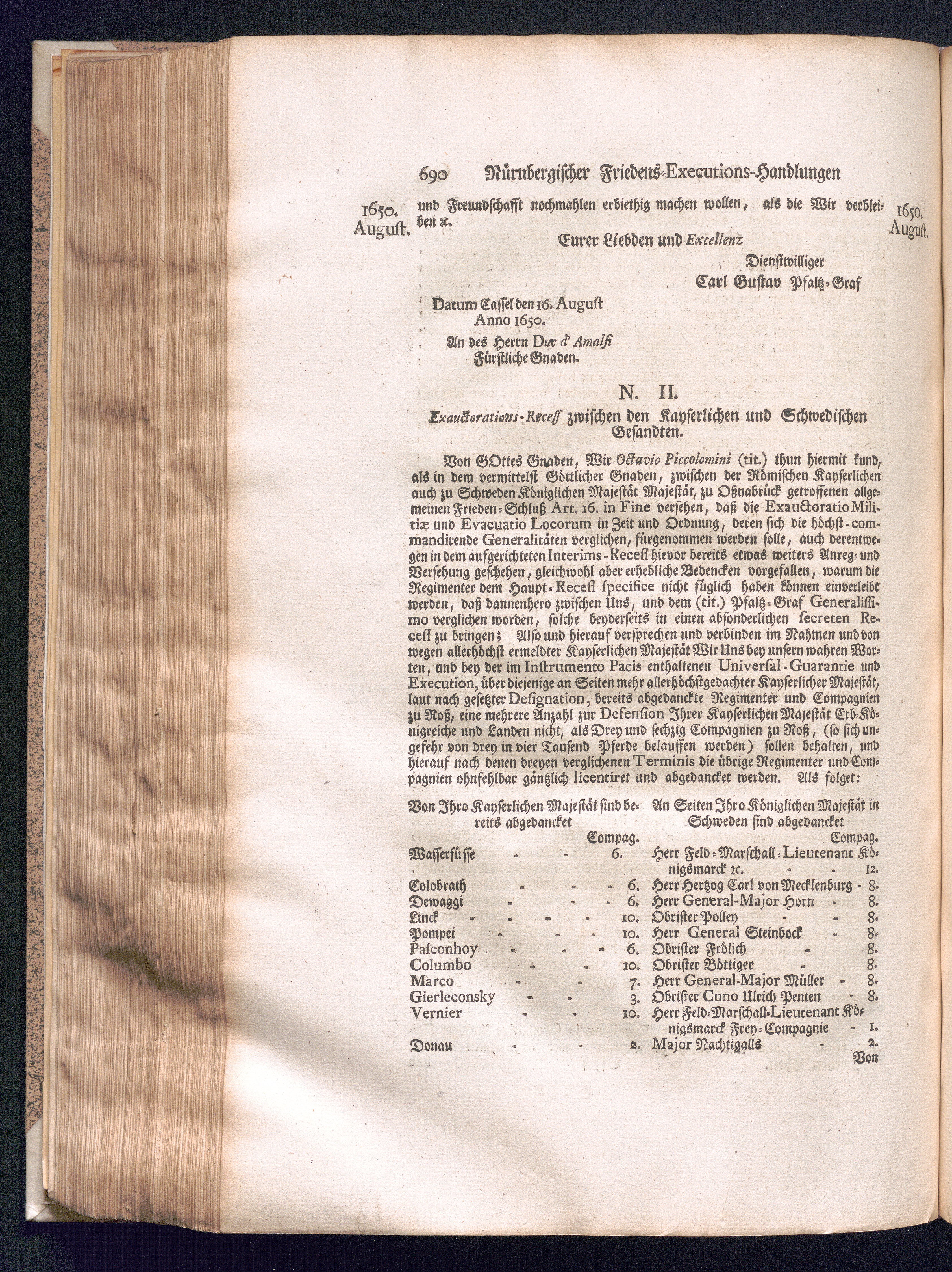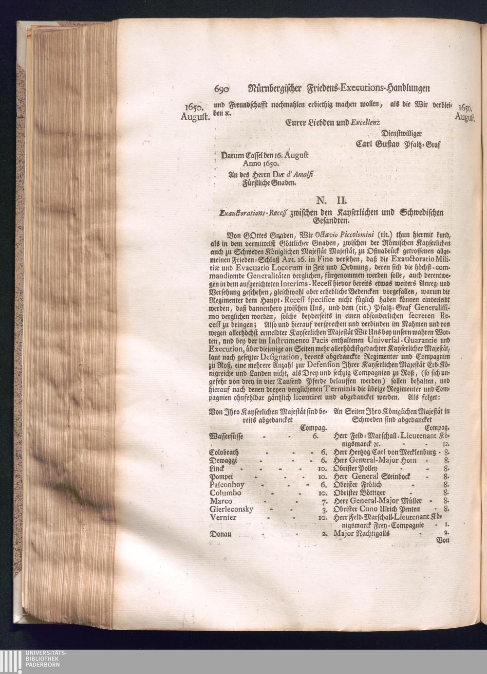 Zweyter und letzter Theil (1737) Worinnen enthalten, wie und welchergestalt die würckliche Vollziehung des Westphälischen Friedens, sowohl in puncto Exauctorationis Militæ und Evacuationis Locorum, als auch und vornehmlich in dem hochwichtigen puncto Restitutionis ex Capite Amnestiæ & Gravaminum, biß zum völligen Schluß des Congressus, Anno 1651, geschehen ist, in einer ausführlichen Historischen Erzehlung, mit beygefügten authentischen Urkunden, auch einem vollständigen Register
