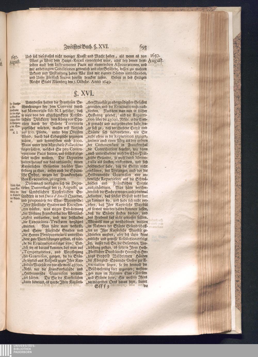 Zweyter und letzter Theil (1737) Worinnen enthalten, wie und welchergestalt die würckliche Vollziehung des Westphälischen Friedens, sowohl in puncto Exauctorationis Militæ und Evacuationis Locorum, als auch und vornehmlich in dem hochwichtigen puncto Restitutionis ex Capite Amnestiæ & Gravaminum, biß zum völligen Schluß des Congressus, Anno 1651, geschehen ist, in einer ausführlichen Historischen Erzehlung, mit beygefügten authentischen Urkunden, auch einem vollständigen Register