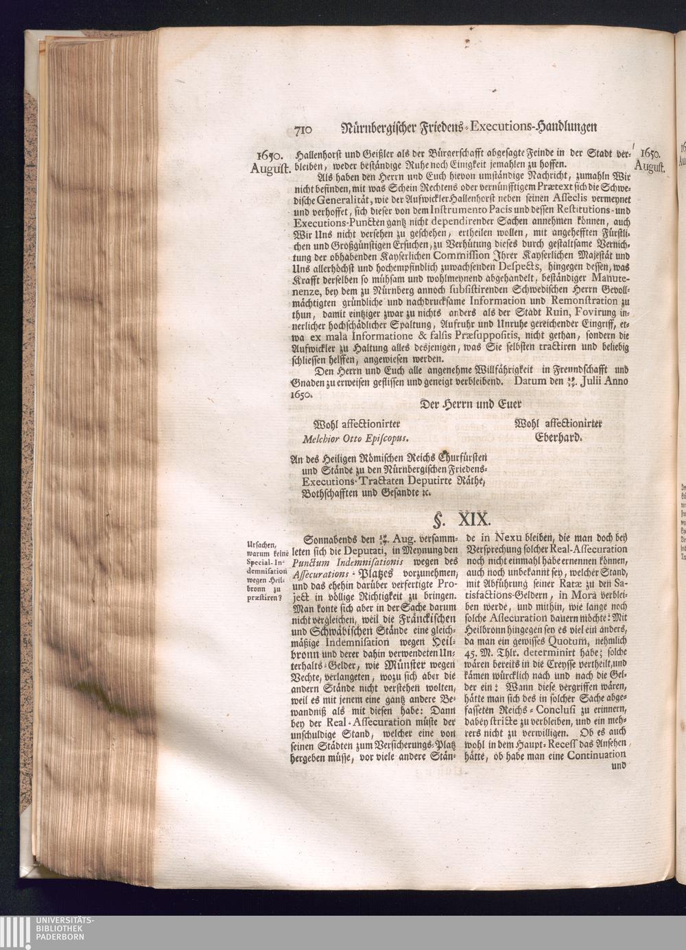 Zweyter und letzter Theil (1737) Worinnen enthalten, wie und welchergestalt die würckliche Vollziehung des Westphälischen Friedens, sowohl in puncto Exauctorationis Militæ und Evacuationis Locorum, als auch und vornehmlich in dem hochwichtigen puncto Restitutionis ex Capite Amnestiæ & Gravaminum, biß zum völligen Schluß des Congressus, Anno 1651, geschehen ist, in einer ausführlichen Historischen Erzehlung, mit beygefügten authentischen Urkunden, auch einem vollständigen Register
