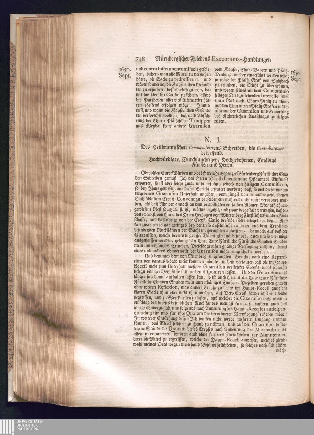 Zweyter und letzter Theil (1737) Worinnen enthalten, wie und welchergestalt die würckliche Vollziehung des Westphälischen Friedens, sowohl in puncto Exauctorationis Militæ und Evacuationis Locorum, als auch und vornehmlich in dem hochwichtigen puncto Restitutionis ex Capite Amnestiæ & Gravaminum, biß zum völligen Schluß des Congressus, Anno 1651, geschehen ist, in einer ausführlichen Historischen Erzehlung, mit beygefügten authentischen Urkunden, auch einem vollständigen Register