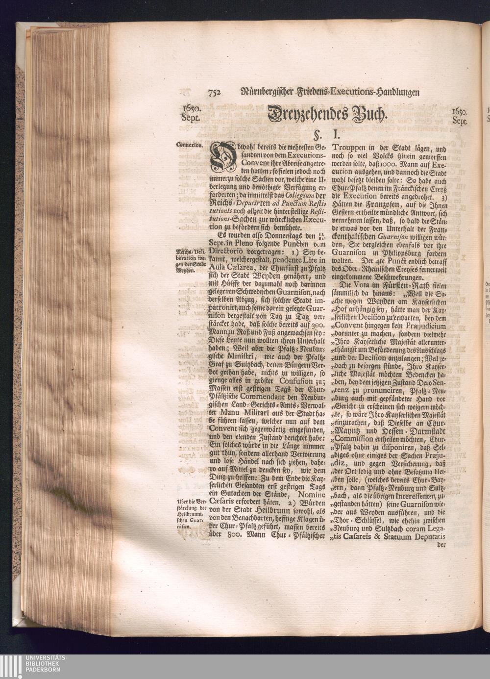 Zweyter und letzter Theil (1737) Worinnen enthalten, wie und welchergestalt die würckliche Vollziehung des Westphälischen Friedens, sowohl in puncto Exauctorationis Militæ und Evacuationis Locorum, als auch und vornehmlich in dem hochwichtigen puncto Restitutionis ex Capite Amnestiæ & Gravaminum, biß zum völligen Schluß des Congressus, Anno 1651, geschehen ist, in einer ausführlichen Historischen Erzehlung, mit beygefügten authentischen Urkunden, auch einem vollständigen Register