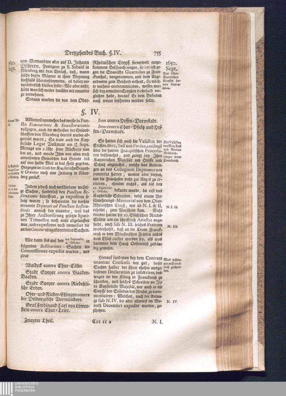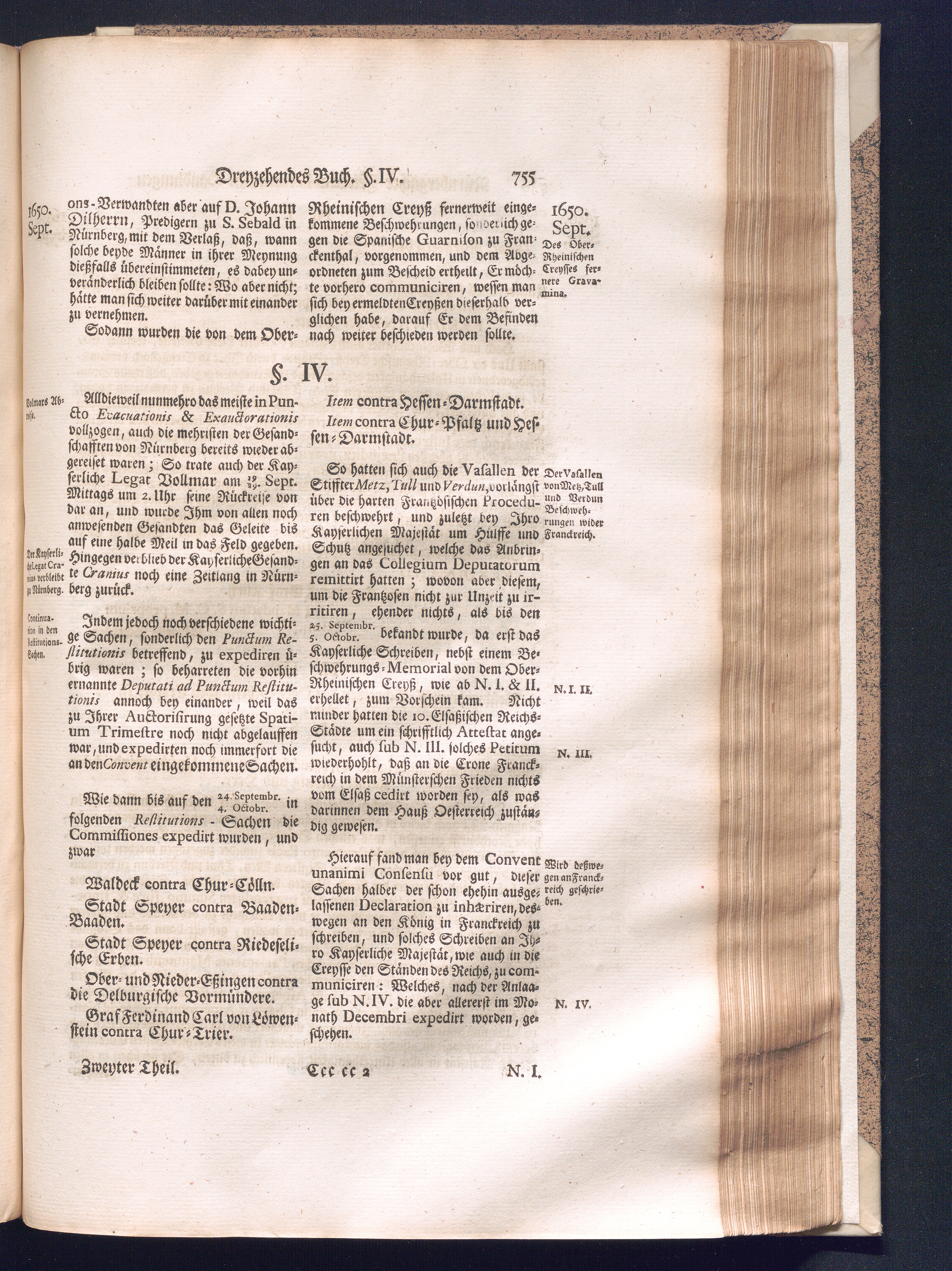 Zweyter und letzter Theil (1737) Worinnen enthalten, wie und welchergestalt die würckliche Vollziehung des Westphälischen Friedens, sowohl in puncto Exauctorationis Militæ und Evacuationis Locorum, als auch und vornehmlich in dem hochwichtigen puncto Restitutionis ex Capite Amnestiæ & Gravaminum, biß zum völligen Schluß des Congressus, Anno 1651, geschehen ist, in einer ausführlichen Historischen Erzehlung, mit beygefügten authentischen Urkunden, auch einem vollständigen Register