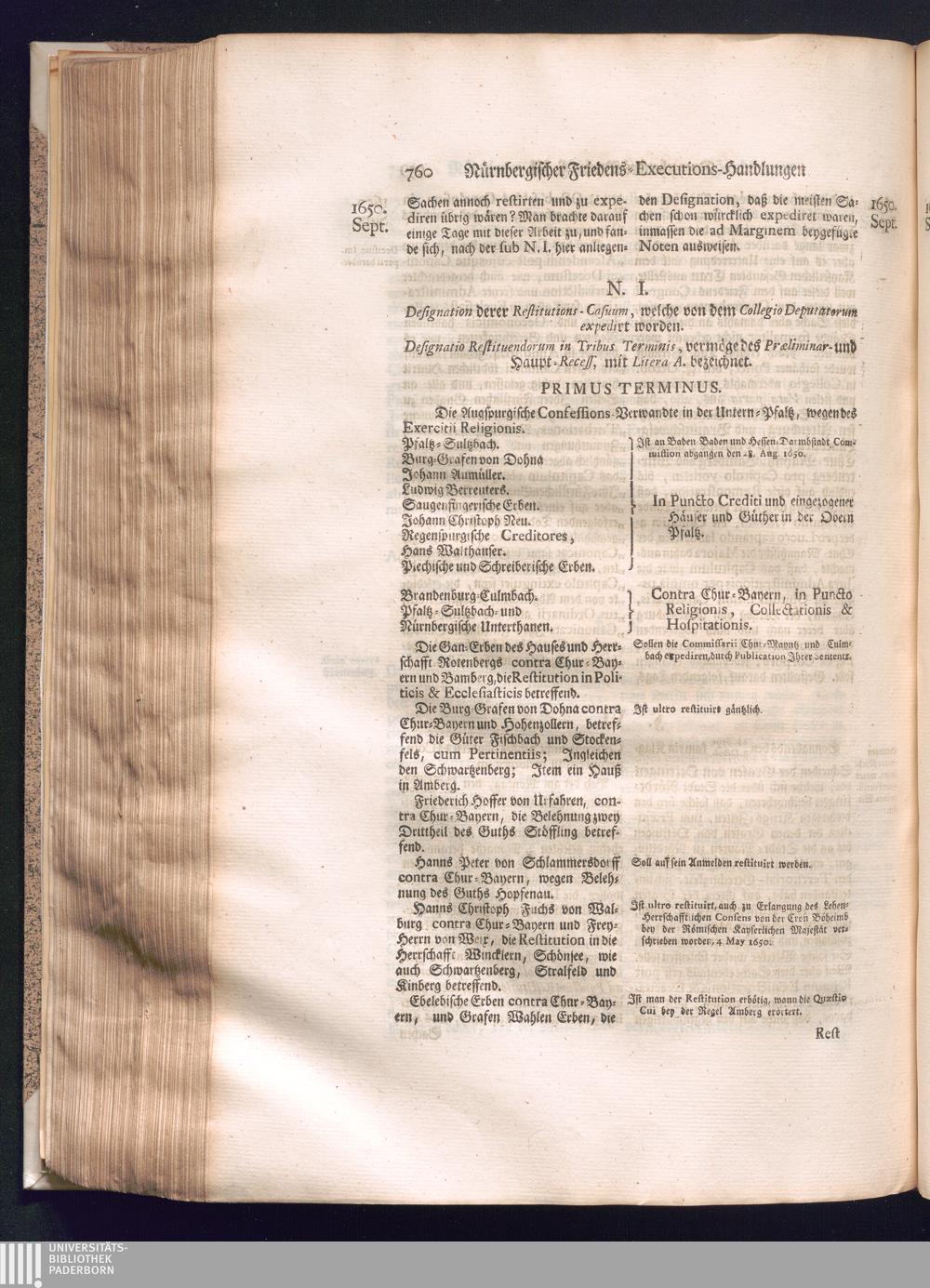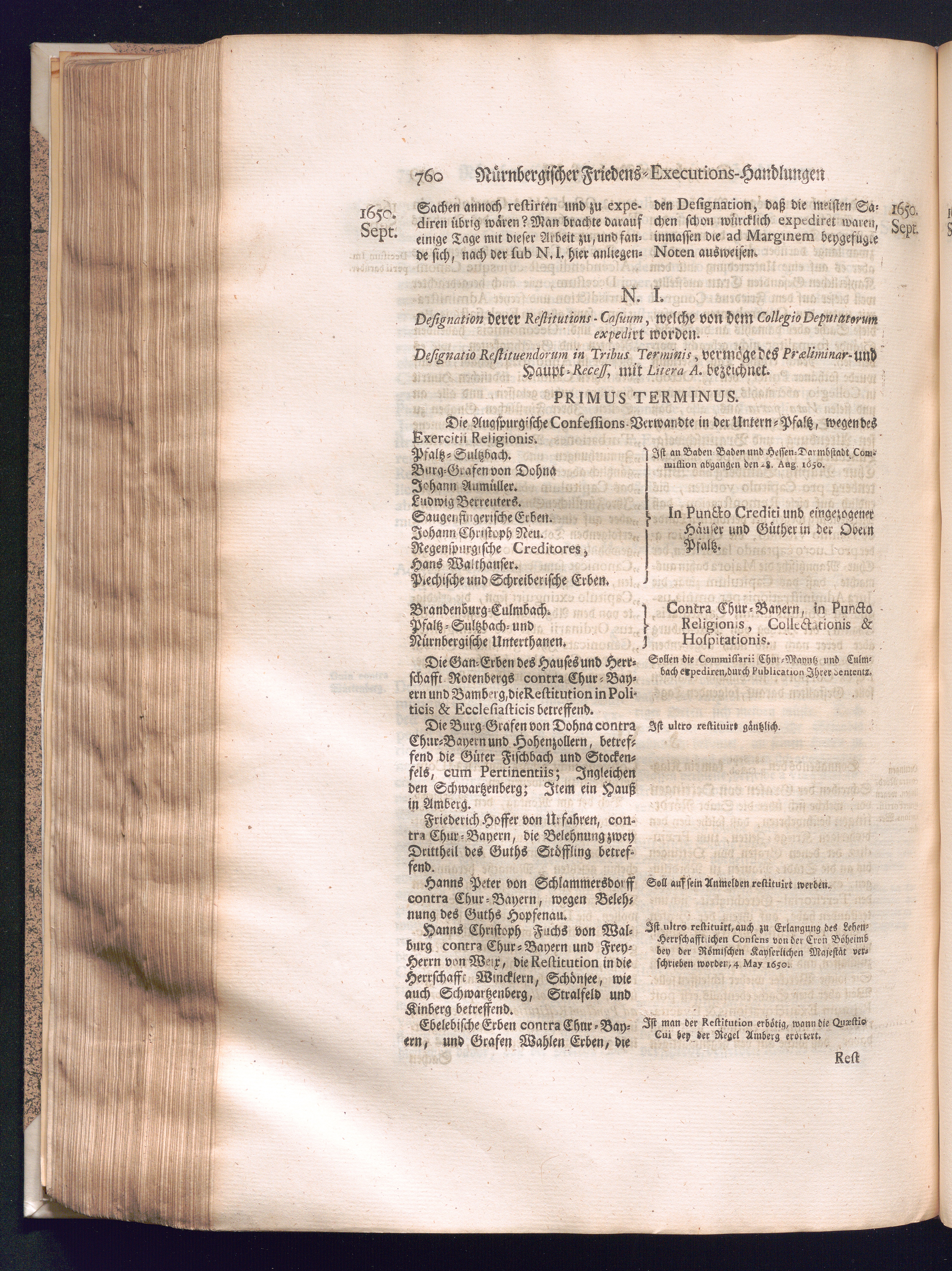 Zweyter und letzter Theil (1737) Worinnen enthalten, wie und welchergestalt die würckliche Vollziehung des Westphälischen Friedens, sowohl in puncto Exauctorationis Militæ und Evacuationis Locorum, als auch und vornehmlich in dem hochwichtigen puncto Restitutionis ex Capite Amnestiæ & Gravaminum, biß zum völligen Schluß des Congressus, Anno 1651, geschehen ist, in einer ausführlichen Historischen Erzehlung, mit beygefügten authentischen Urkunden, auch einem vollständigen Register