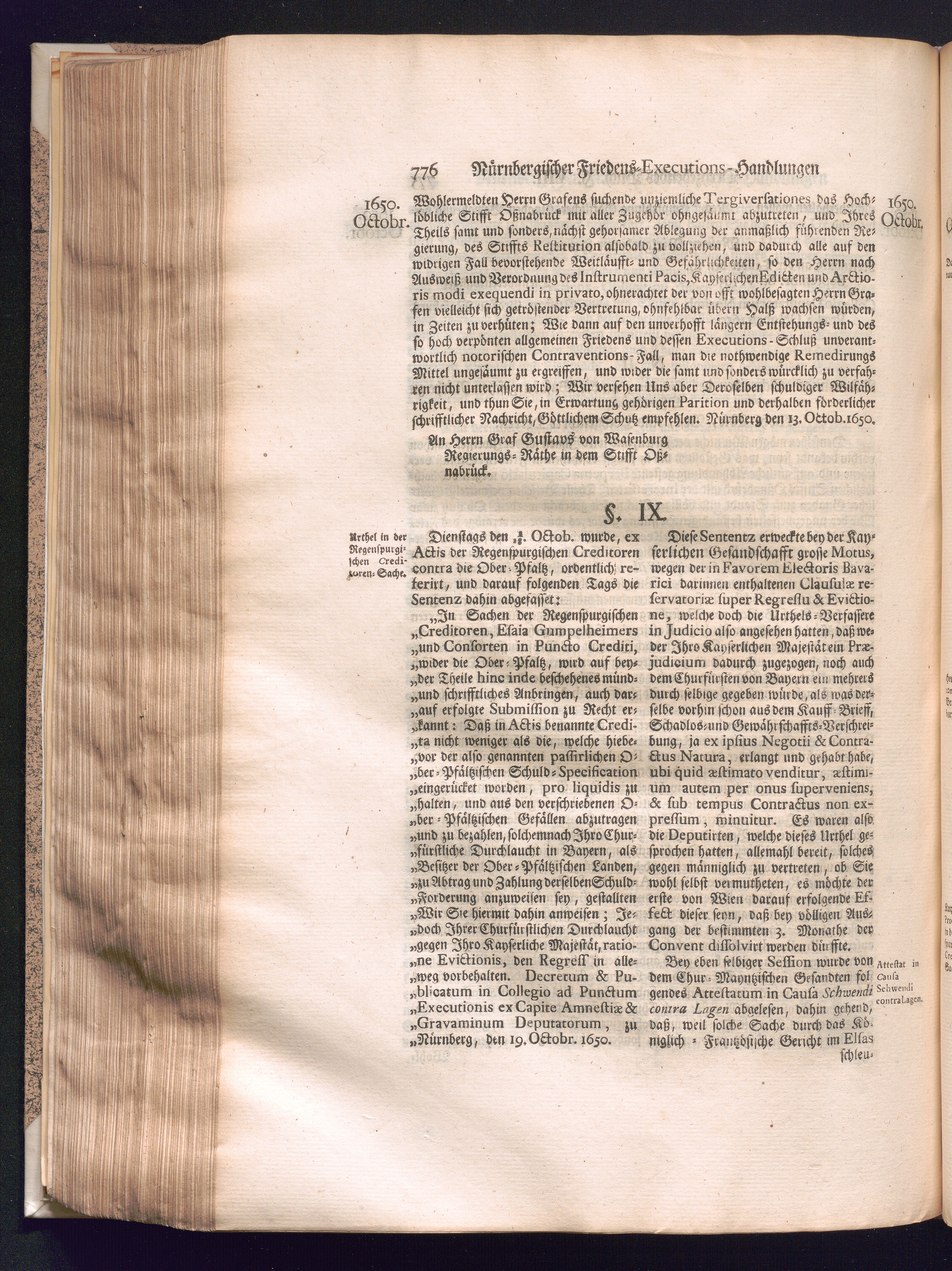 Zweyter und letzter Theil (1737) Worinnen enthalten, wie und welchergestalt die würckliche Vollziehung des Westphälischen Friedens, sowohl in puncto Exauctorationis Militæ und Evacuationis Locorum, als auch und vornehmlich in dem hochwichtigen puncto Restitutionis ex Capite Amnestiæ & Gravaminum, biß zum völligen Schluß des Congressus, Anno 1651, geschehen ist, in einer ausführlichen Historischen Erzehlung, mit beygefügten authentischen Urkunden, auch einem vollständigen Register