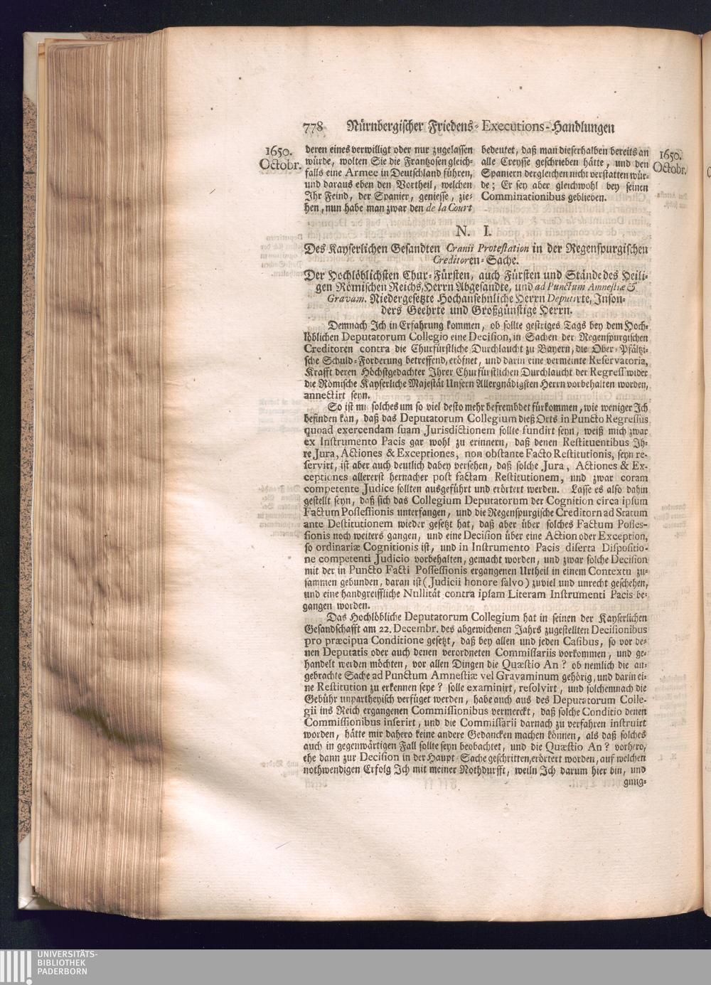 Zweyter und letzter Theil (1737) Worinnen enthalten, wie und welchergestalt die würckliche Vollziehung des Westphälischen Friedens, sowohl in puncto Exauctorationis Militæ und Evacuationis Locorum, als auch und vornehmlich in dem hochwichtigen puncto Restitutionis ex Capite Amnestiæ & Gravaminum, biß zum völligen Schluß des Congressus, Anno 1651, geschehen ist, in einer ausführlichen Historischen Erzehlung, mit beygefügten authentischen Urkunden, auch einem vollständigen Register
