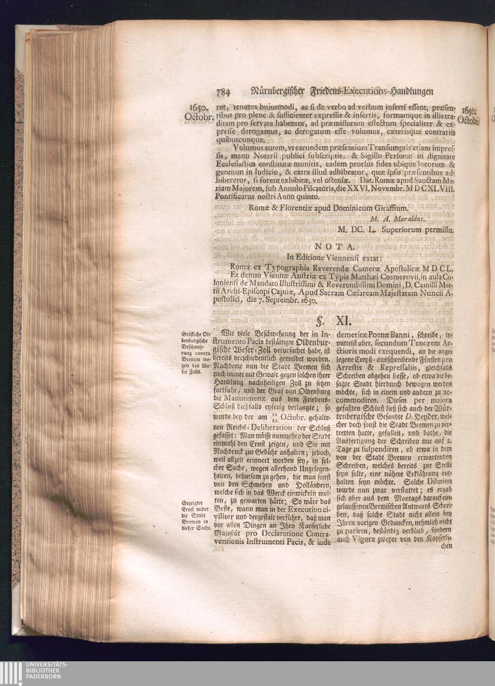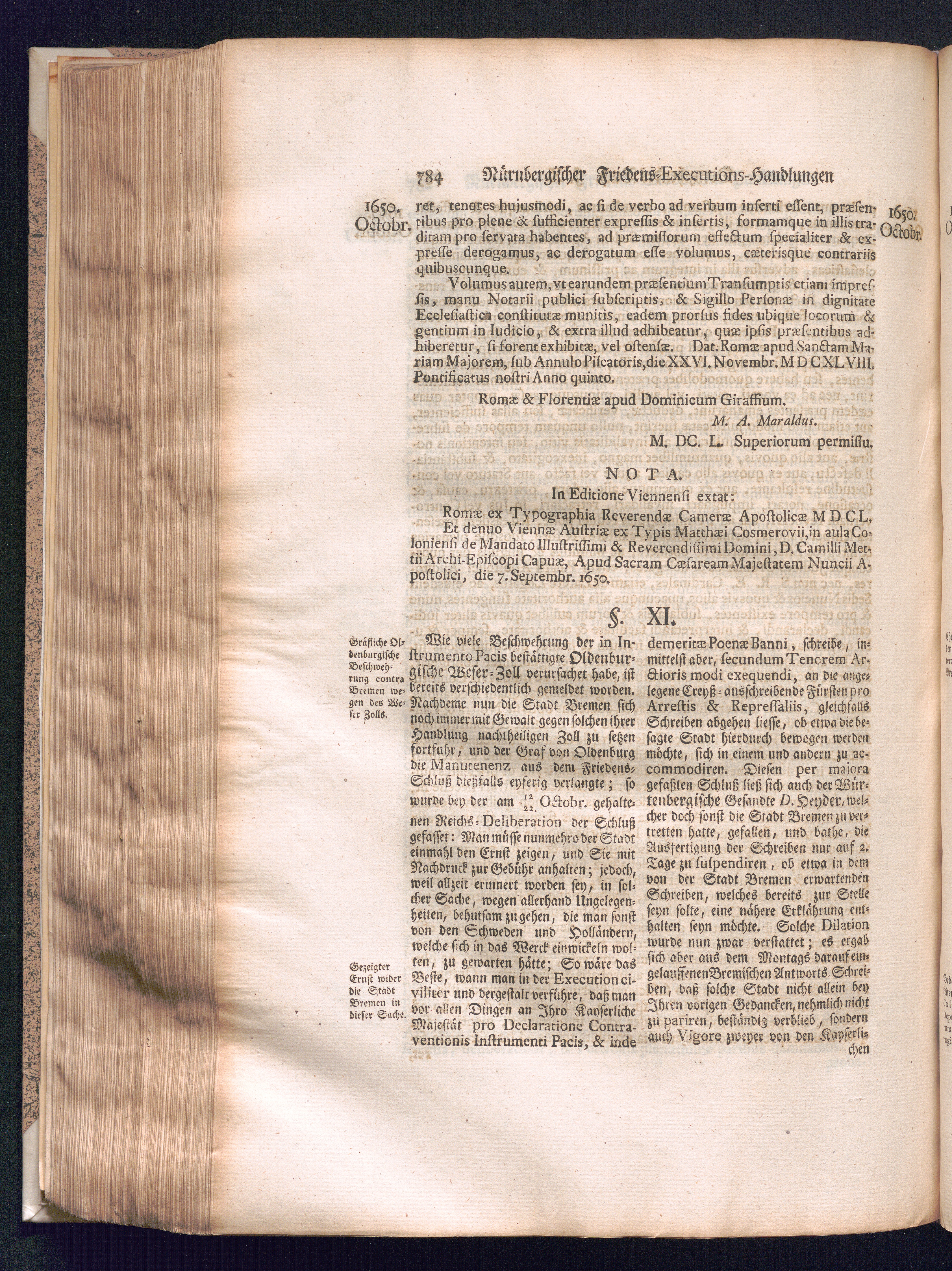 Zweyter und letzter Theil (1737) Worinnen enthalten, wie und welchergestalt die würckliche Vollziehung des Westphälischen Friedens, sowohl in puncto Exauctorationis Militæ und Evacuationis Locorum, als auch und vornehmlich in dem hochwichtigen puncto Restitutionis ex Capite Amnestiæ & Gravaminum, biß zum völligen Schluß des Congressus, Anno 1651, geschehen ist, in einer ausführlichen Historischen Erzehlung, mit beygefügten authentischen Urkunden, auch einem vollständigen Register